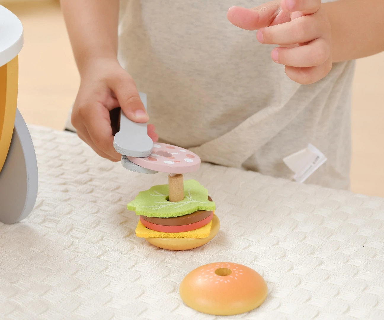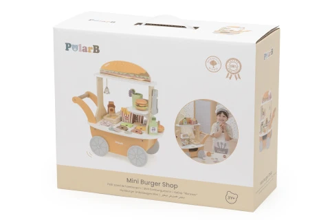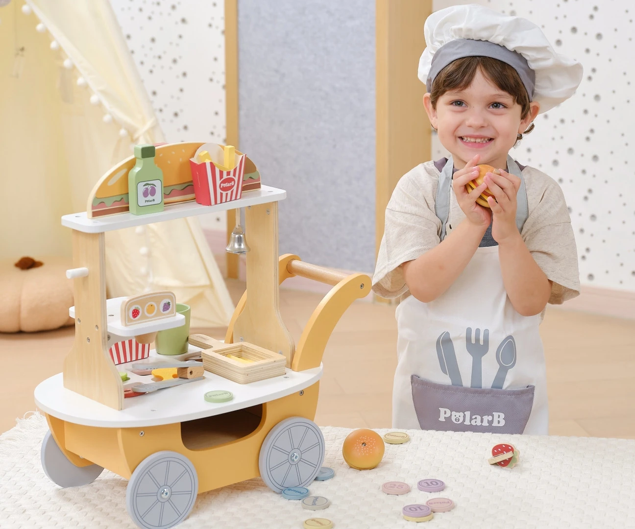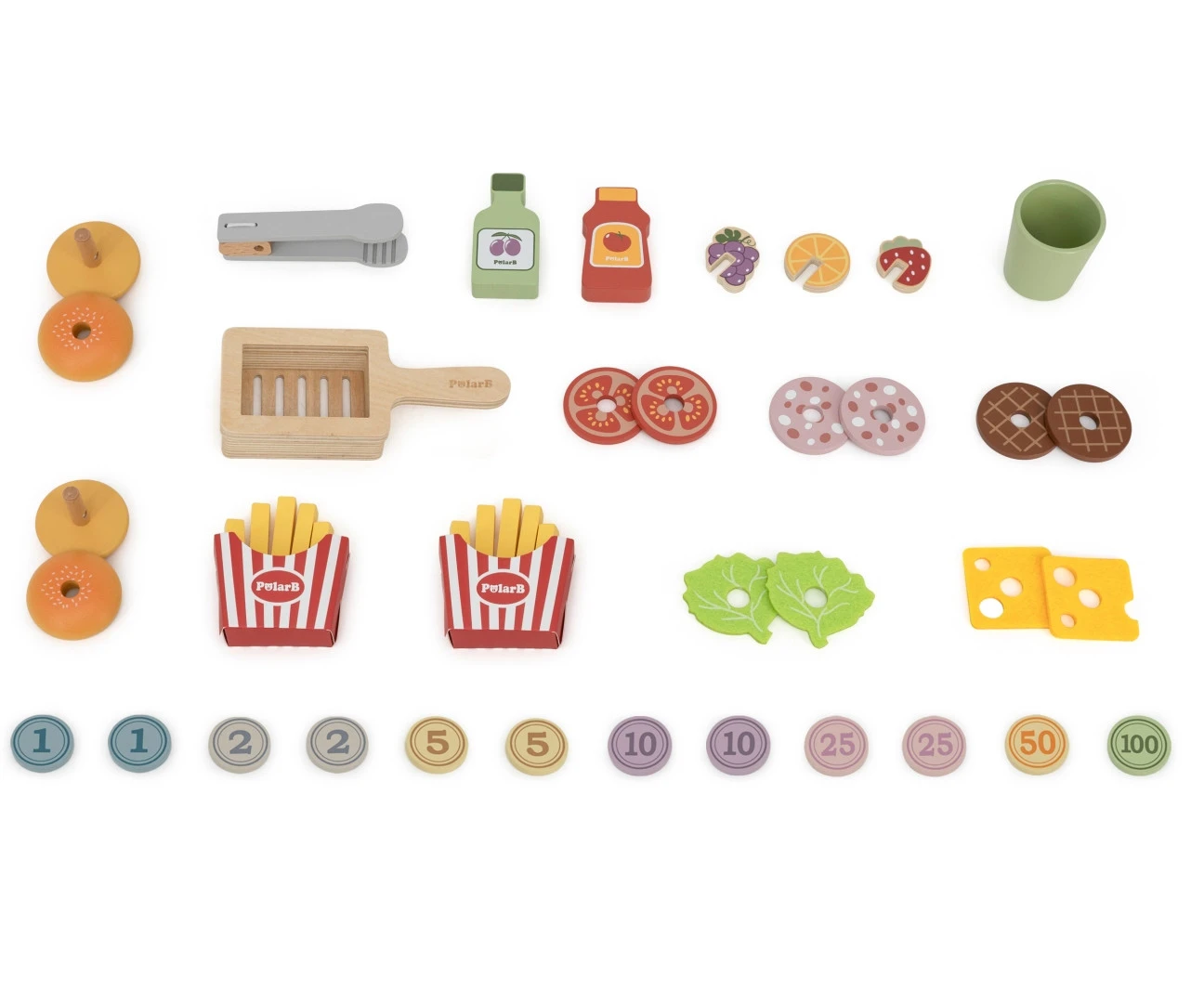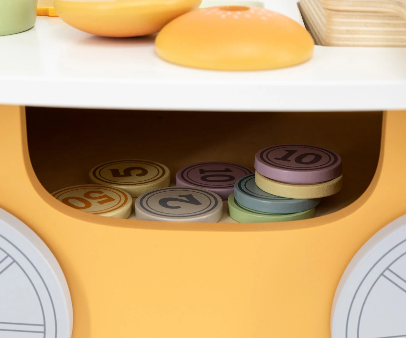 Drevený stánok s rýchlym občerstvením ponúka deťom skvelý priestor na hru na predavačov a zákazníkov.