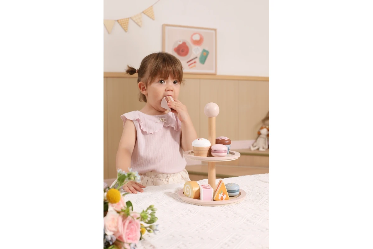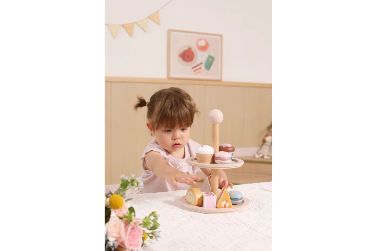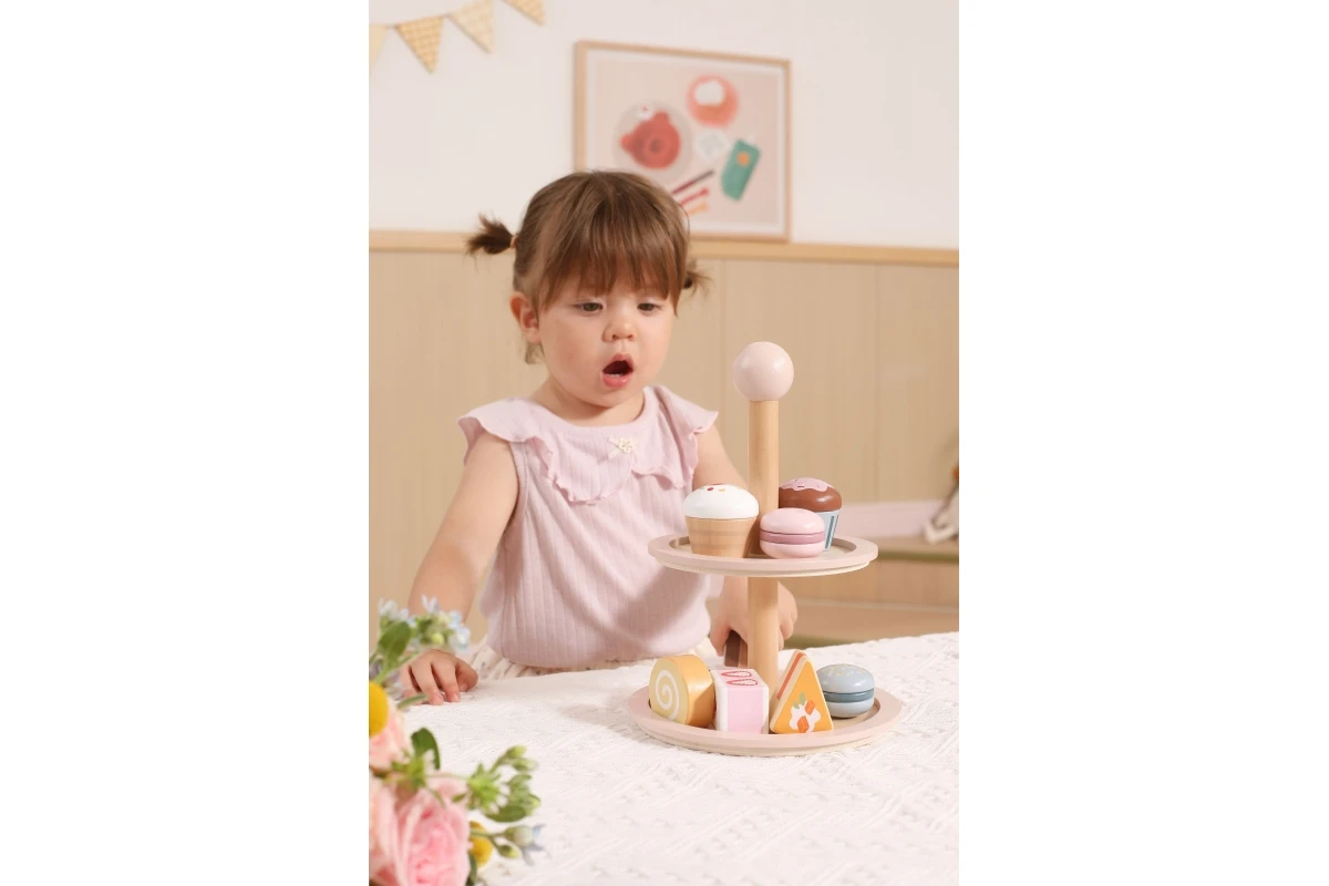 Stojan má kompaktnú veľkosť vhodnú do detskej izbičky aj herného kútika a ľahko sa upratuje. Deti si pri hre precvičujú aj pomenovanie farieb a tvarov a učia sa zdieľať hračky s ostatnými.
