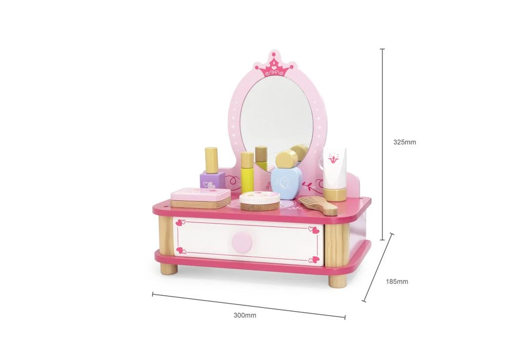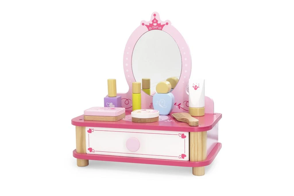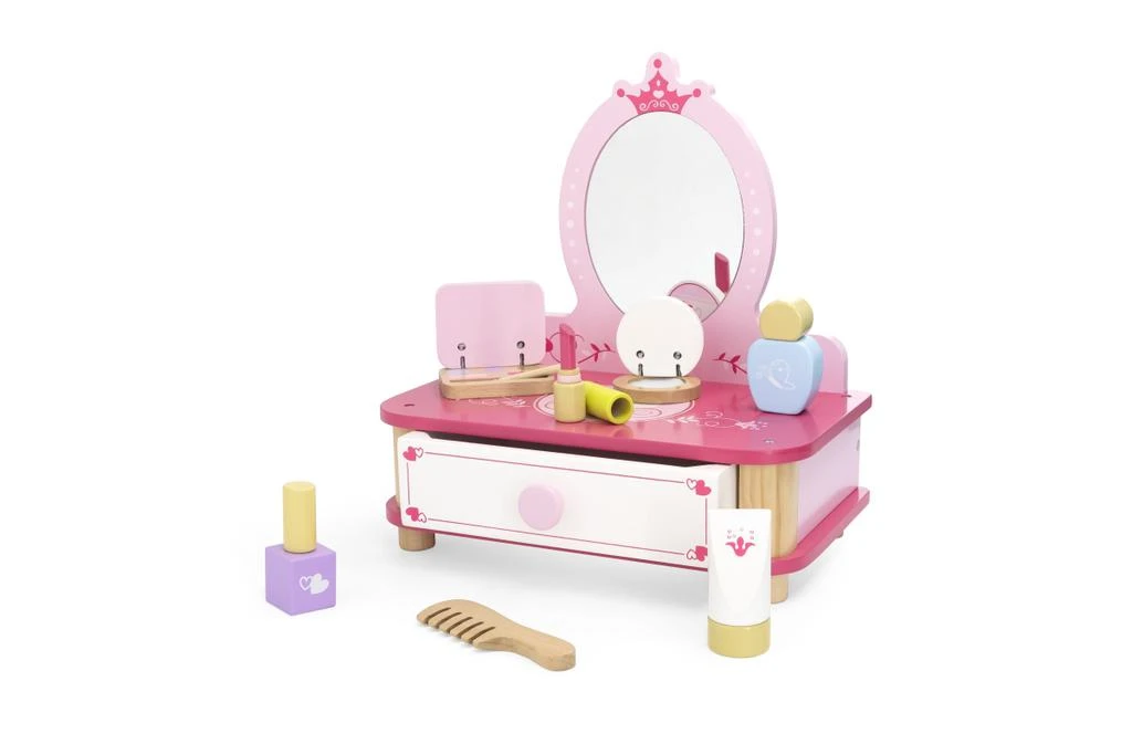 Balenie obsahuje toaletný stolík so zrkadlom, hrebeň, fľaštičky a ďalšie doplnky.