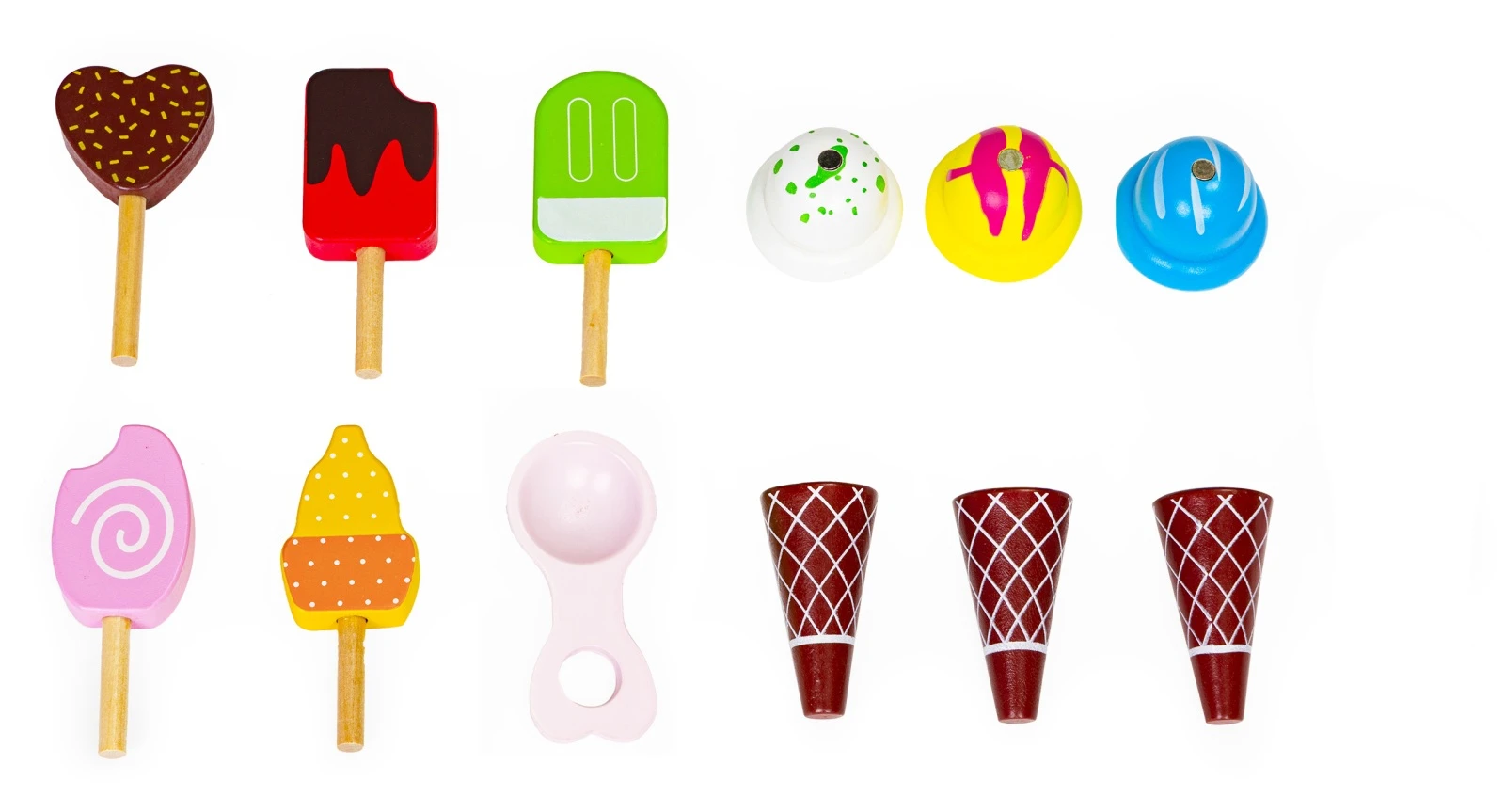 Vďaka vozíku sa môžu vžiť do role predavača chutné, farebné zmrzliny. Okrem radostnej hry si dieťa rozvíja predstavivosť, kreativitu a jemnú motoriku a vozík sa rýchlo stane obľúbenou hračkou.