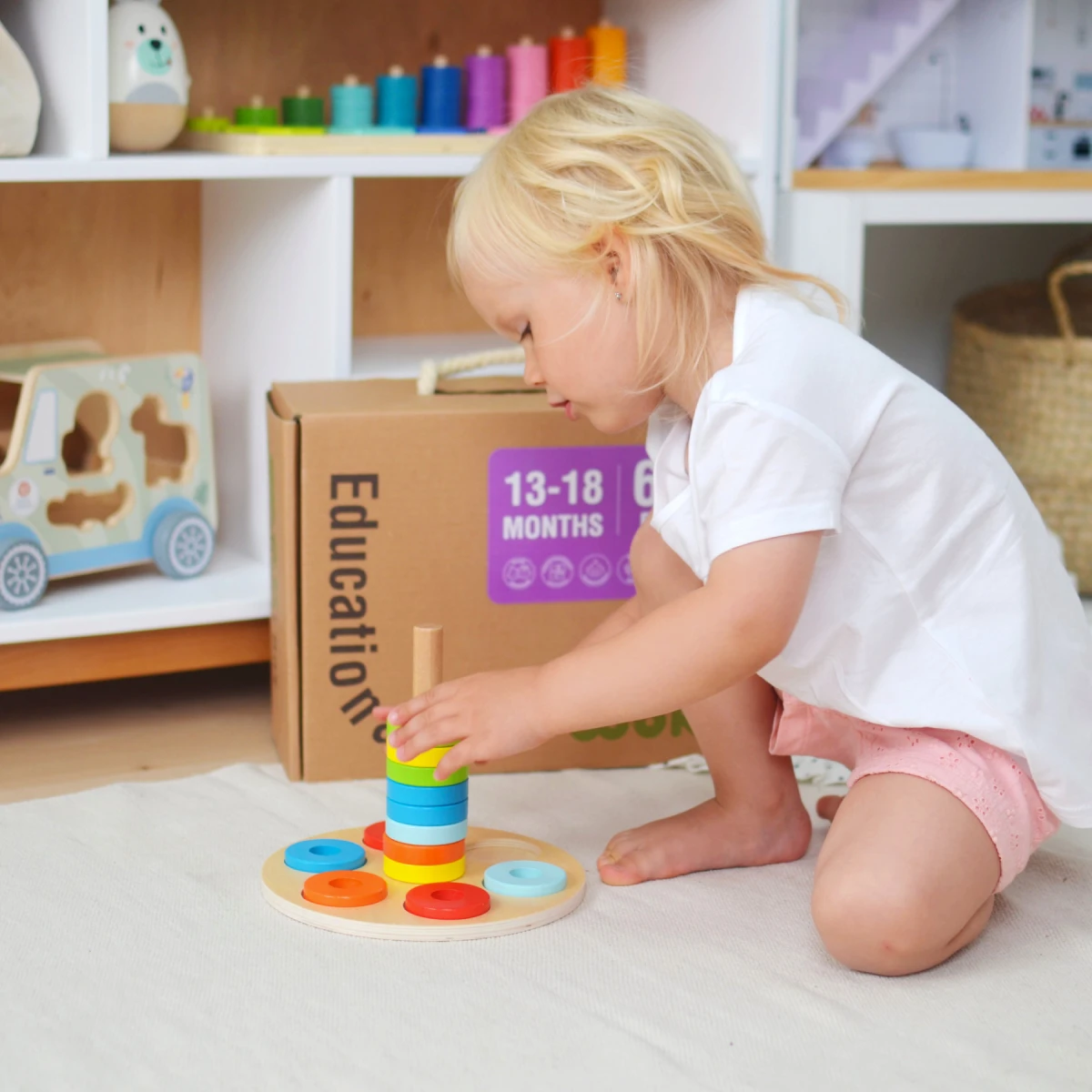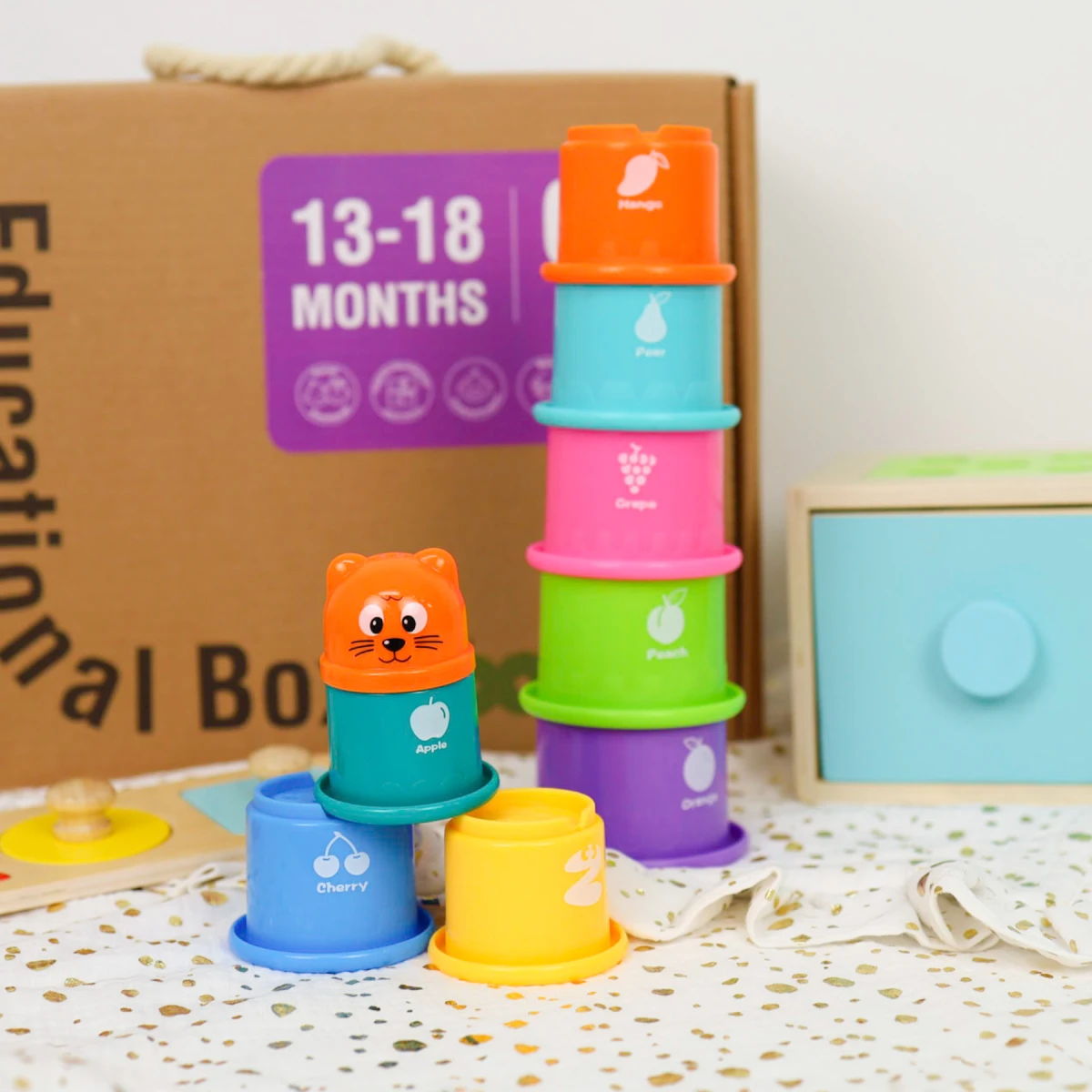 Až bábätko vyrastie, prejde do ďalšieho Vzdelávacieho boxu vo veku 19-24 mesiacov a tento si môžete nechať pre mladších súrodencov alebo ho venovať niekomu inému. Tooky Toy Educational Box je vhodný ako darček pre ročné dieťa.