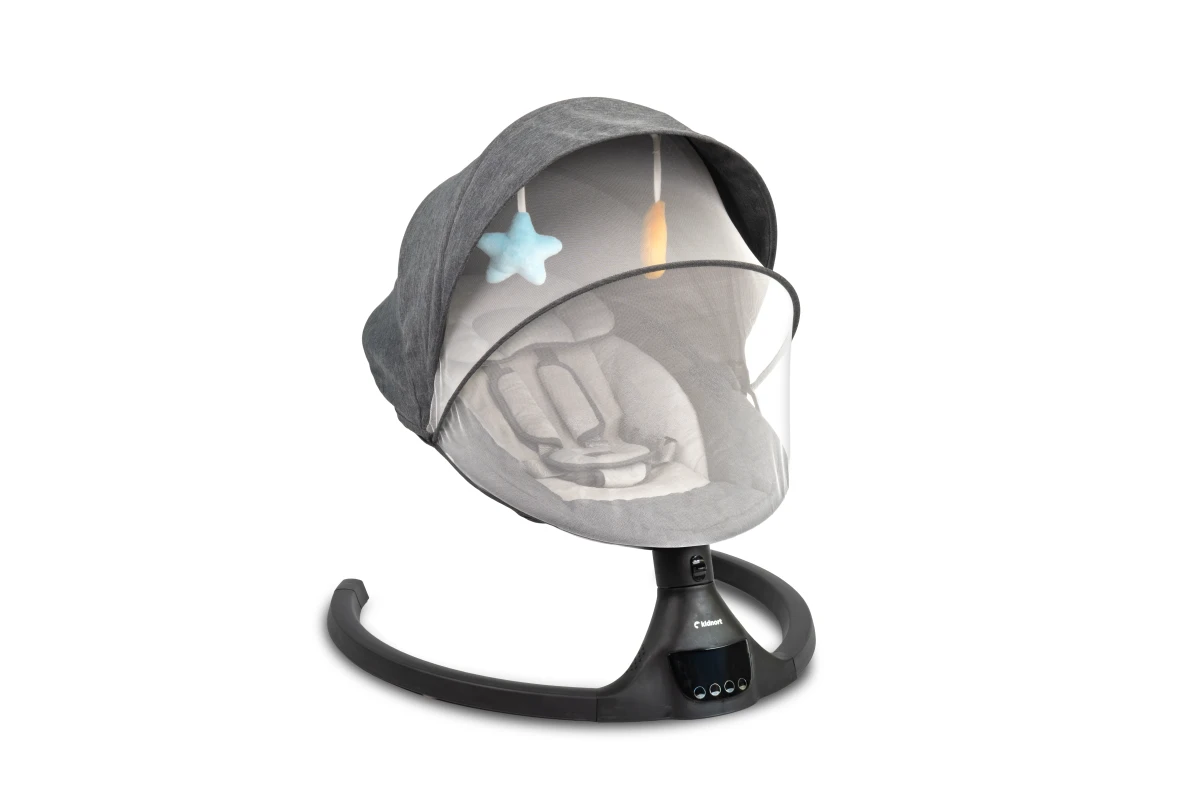 Elektrické hojdačka Svaie je vybavené intuitívnym dotykovým displejom a praktickým diaľkovým ovládačom. Vďaka tomu môžete ľahko meniť režimy alebo čas hojdania ako zblízka, tak aj na diaľku - napríklad pri odpočinku na gauči. Stačí jedno kliknutie a máte všetko pod kontrolou bez nutnosti vstávať.