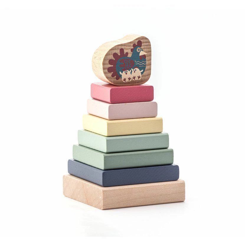 Farebná pyramída so sliepočkou - drevená skladačka 8 dielov Cubika