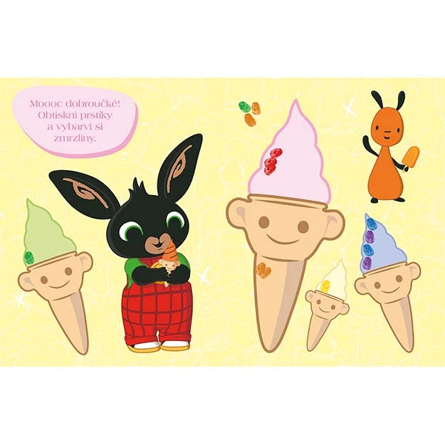 Titul obsahuje 24 strán plných farebných obrázkov na dorazítkovanie prstíky a 6 prstových farieb.