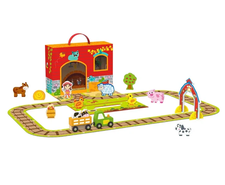 - Prenosná zábava: Navrhnutý pre jednoduchú prepravu, tento kufor sa rozkladá a odhaľuje živý farmársky herný set s rozložením tratí. Či už ste na cestách, navštevujete príbuzných, alebo si len užívate deň vonku, táto herná súprava sa ľahko prenáša a ešte ľahšie sa nastavuje.