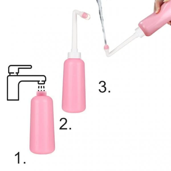 - Jednoduché a pohodlné použitie – Stačí naplniť fľašu teplou vodou, nasmerovať trysku k intímnym partiám a jemne stlačiť fľašu, aby sa uvoľnil osviežujúci a jemný prúd vody.