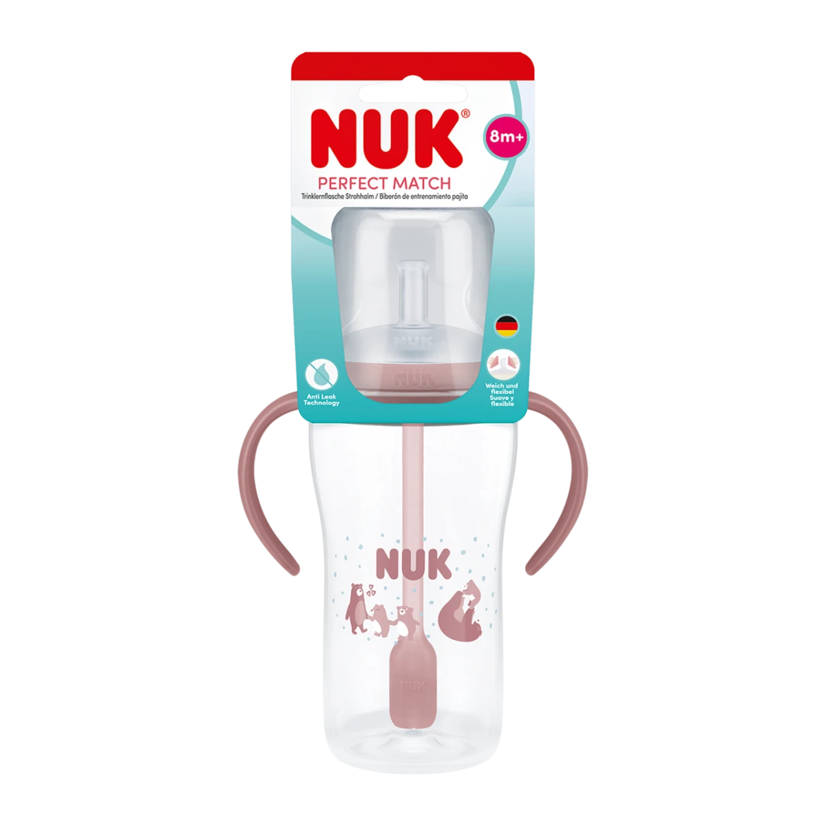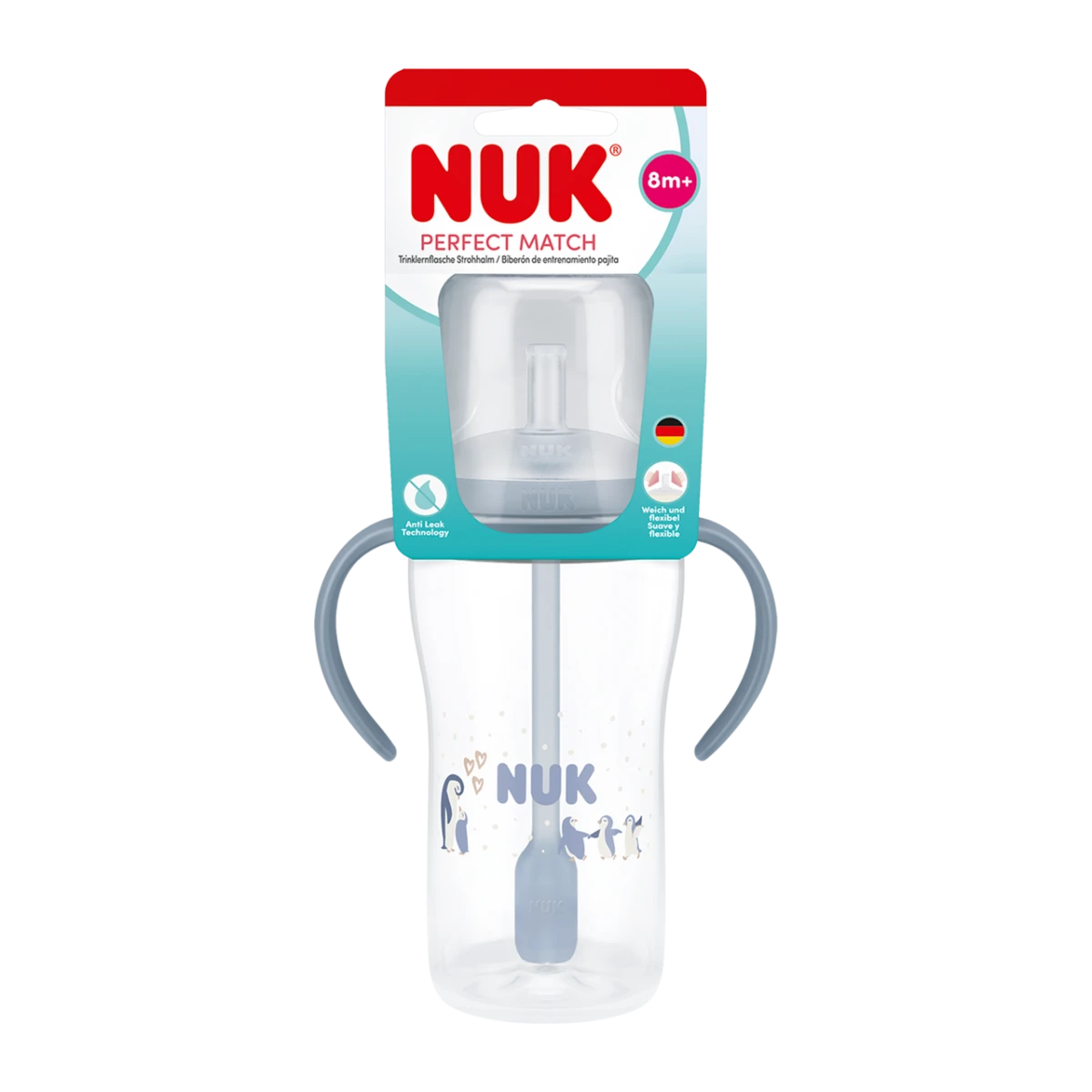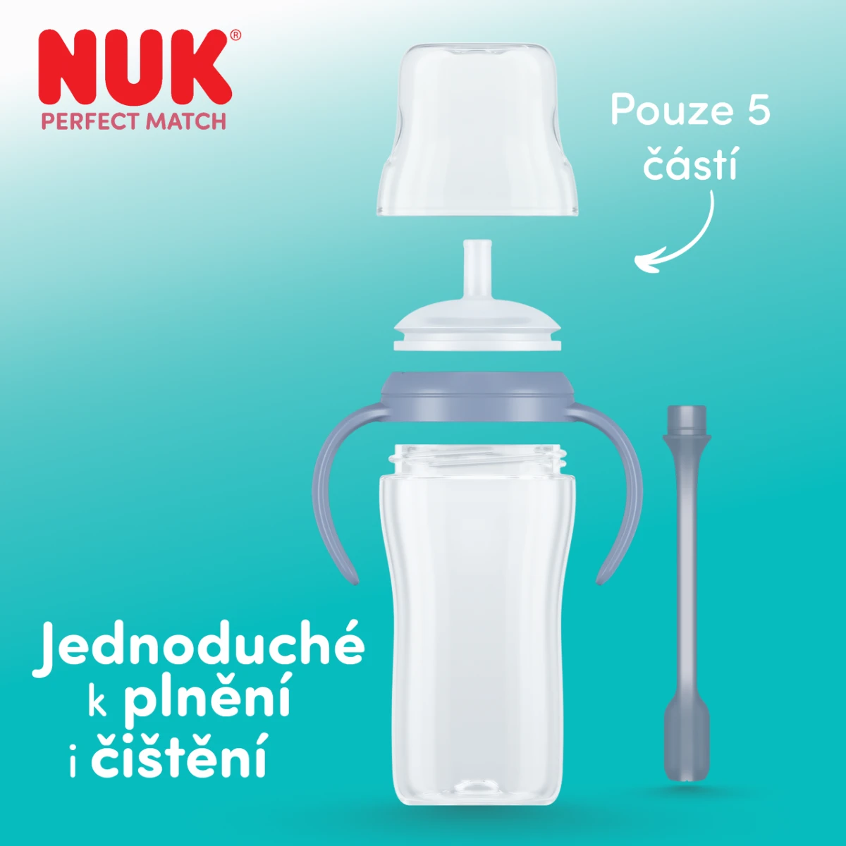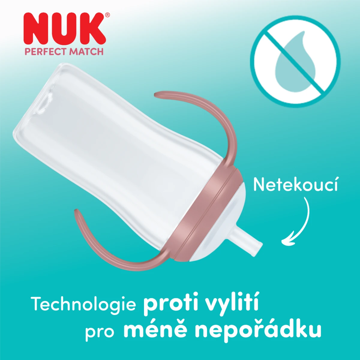 Fľaštička na učenie NUK Perfect Match so slamkou bola starostlivo navrhnutá tak, aby podporila prirodzený a plynulý prechod z fľaše na hrnček u detí už od 8 mesiacov.