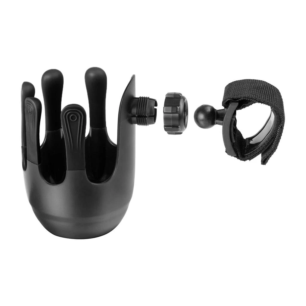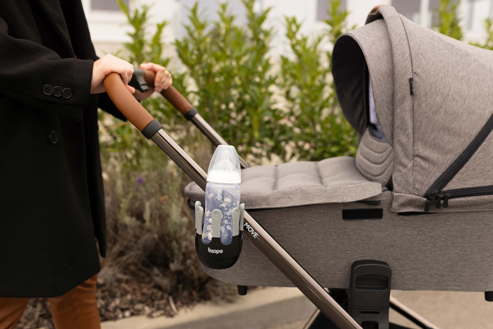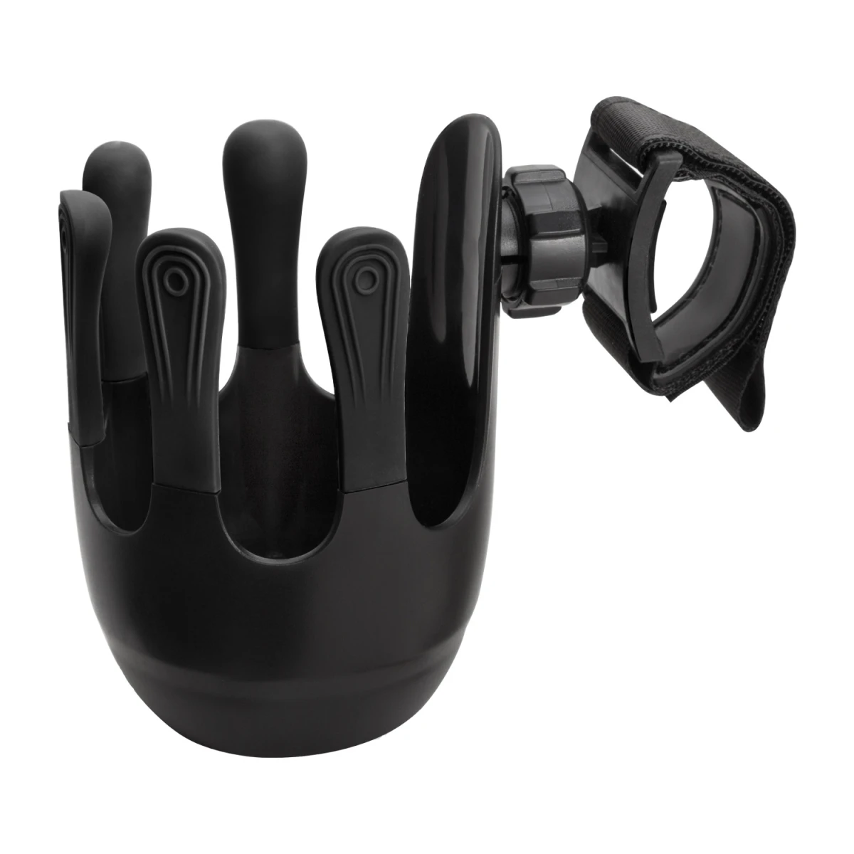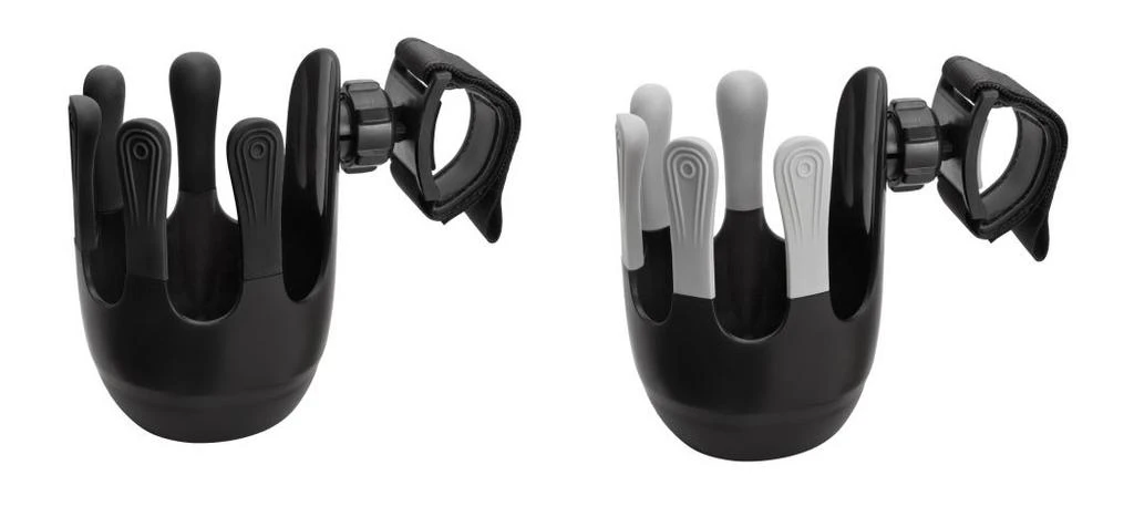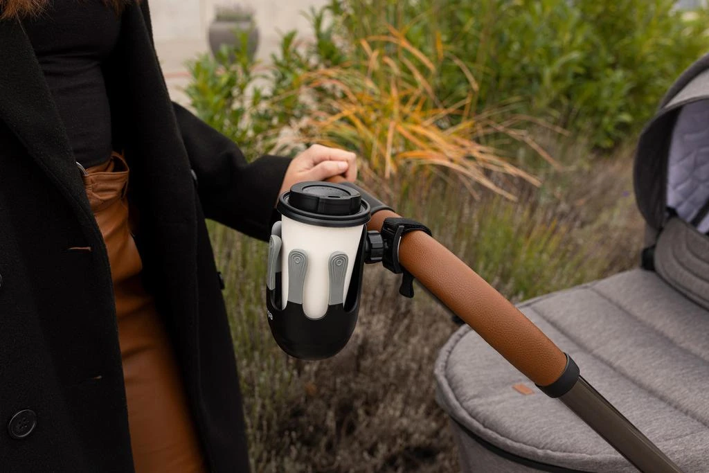 Systém s 360 ° rotáciou je možné vďaka jednoduchej inštalácii pomocou suchého zipsu pripevniť na rukoväť takmer akéhokoľvek kočíka. Unikátny, moderne vyzerajúci päťprstý systém zaisťuje lepšiu stabilitu téglika alebo fľaše, zabraňuje tak nechcenému vyliatiu nápoja.