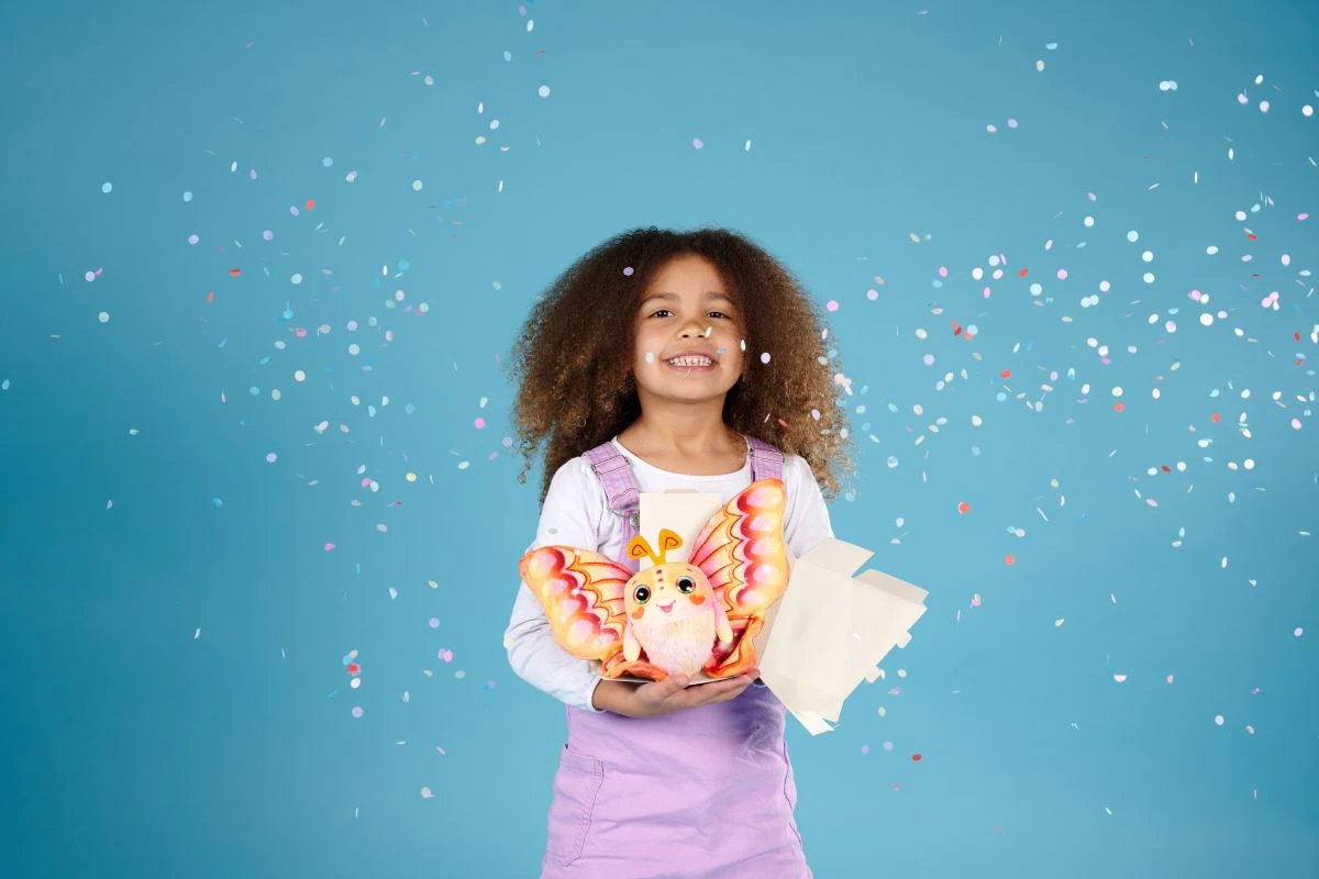 Plyšoví motýliky Fluffyfly sú kúzelní spoločníci plní farieb a radosti. Každý motýlik má mäkké, nadýchané telíčko z príjemnej látky a nádherné krídla, ktoré sa po nafúknutí rozvinú do trblietavej krásy. Motýlikovia prichádzajú zabalení s konfetami a vďaka šikovnému pútku ich môžete ľahko zavesiť. Keď časom stratí objem, jednoducho ich znovu prifúknite – a budú opäť vyzerať ako noví. K dostaniu v štyroch farebných variantoch s dúhovými očami. JEDNA SA O MYSTERY BOX. DODÁVAME PODĽA SKLADOVEJ DOSTUPNOSTI.