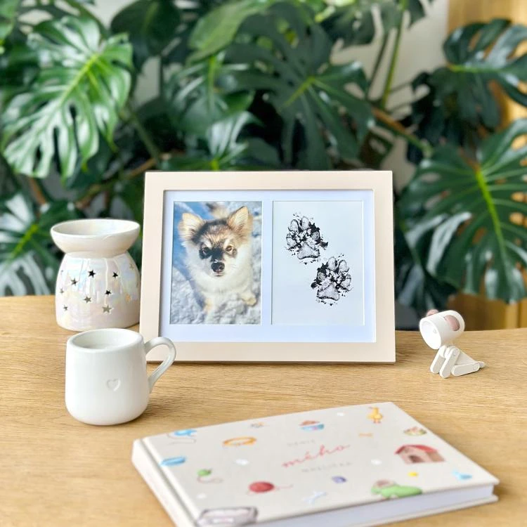 Fotorámik ponúka miesto na jednu fotografiu a odtlačok labiek.