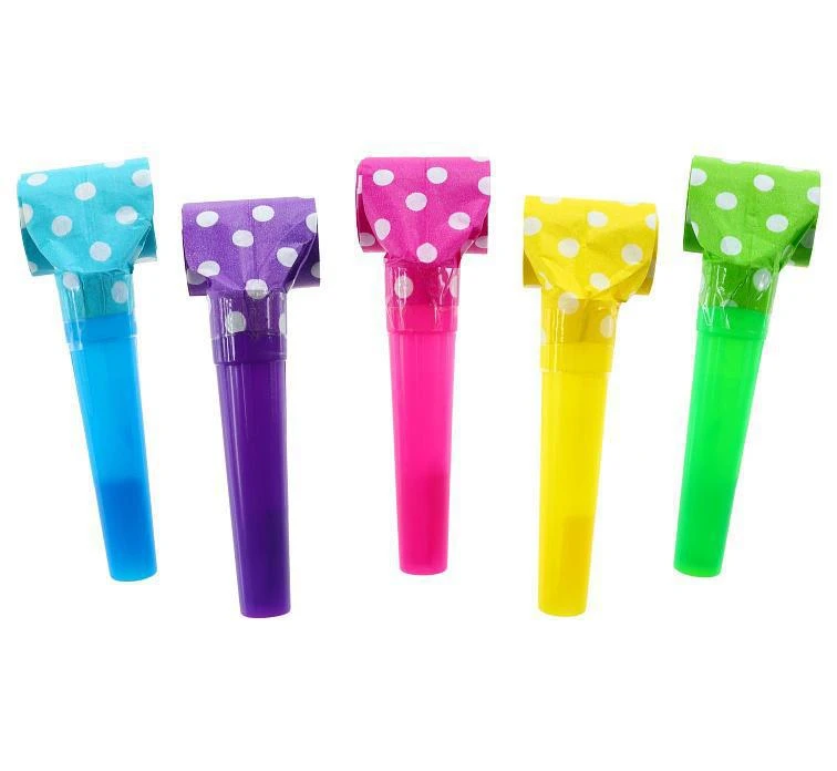 Sada piatich rozvinovacích frkačiek v rôznych farbách s bodkami.