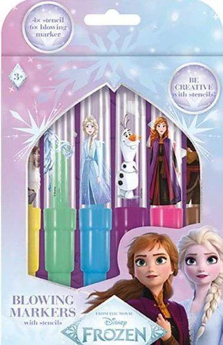 Balenie obsahuje 6 farebných fúkacích fixiek s potlačou a 4 farebné papierové šablónky v obľúbených motívoch.