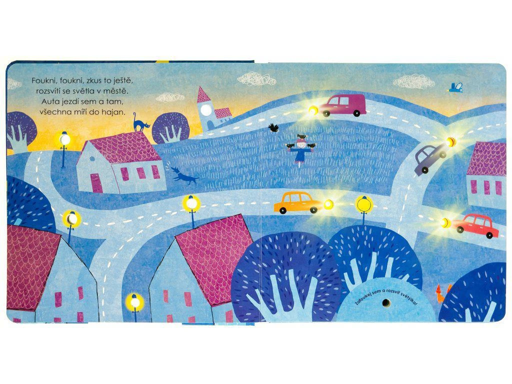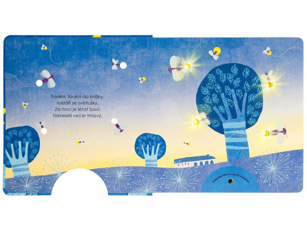 Fúkajte s deťmi na čidlo v kúzelne ilustrovanom leporele so svetielkami – rozsvecujte a zhasínajte ich pred spaním a nechajte sa ukolísať pokojnými básničkami.