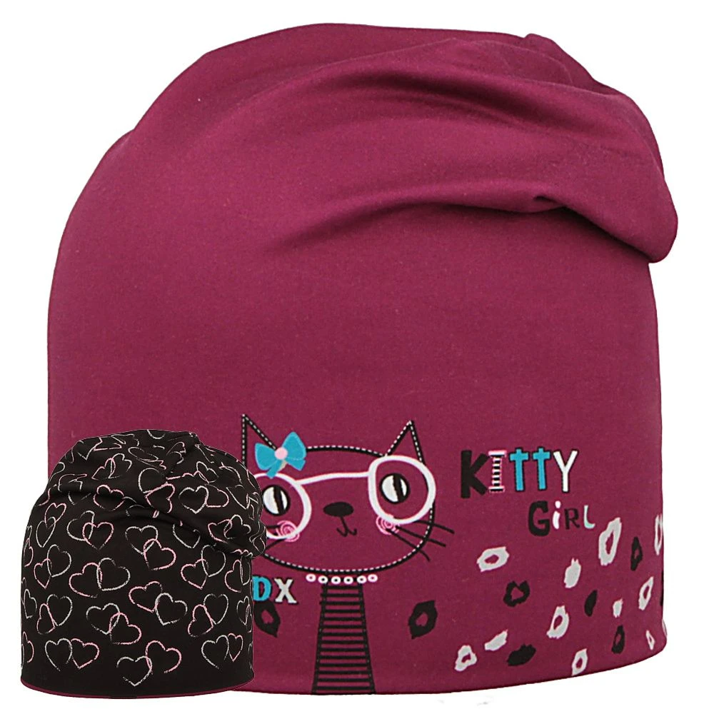 Funkčná čiapka dlhá obojstranná Kitty/Srdce fialová RDX