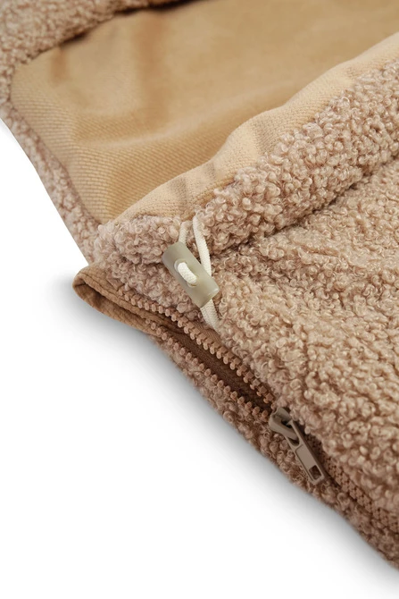 Výroba v EÚ je zárukou najvyššej kvality. Spací vak je vyrobený z certifikovaných materiálov šetrných k citlivej pokožke dieťaťa. Vnútornú časť tvorí jemný velvet, ktorý je mäkký a príjemný na dotyk. Vonkajšia vrstva z tkaniny bouclé chráni proti chladu a vetru a zároveň zaujme svojim elegantným, nadýchaným vzhľadom.