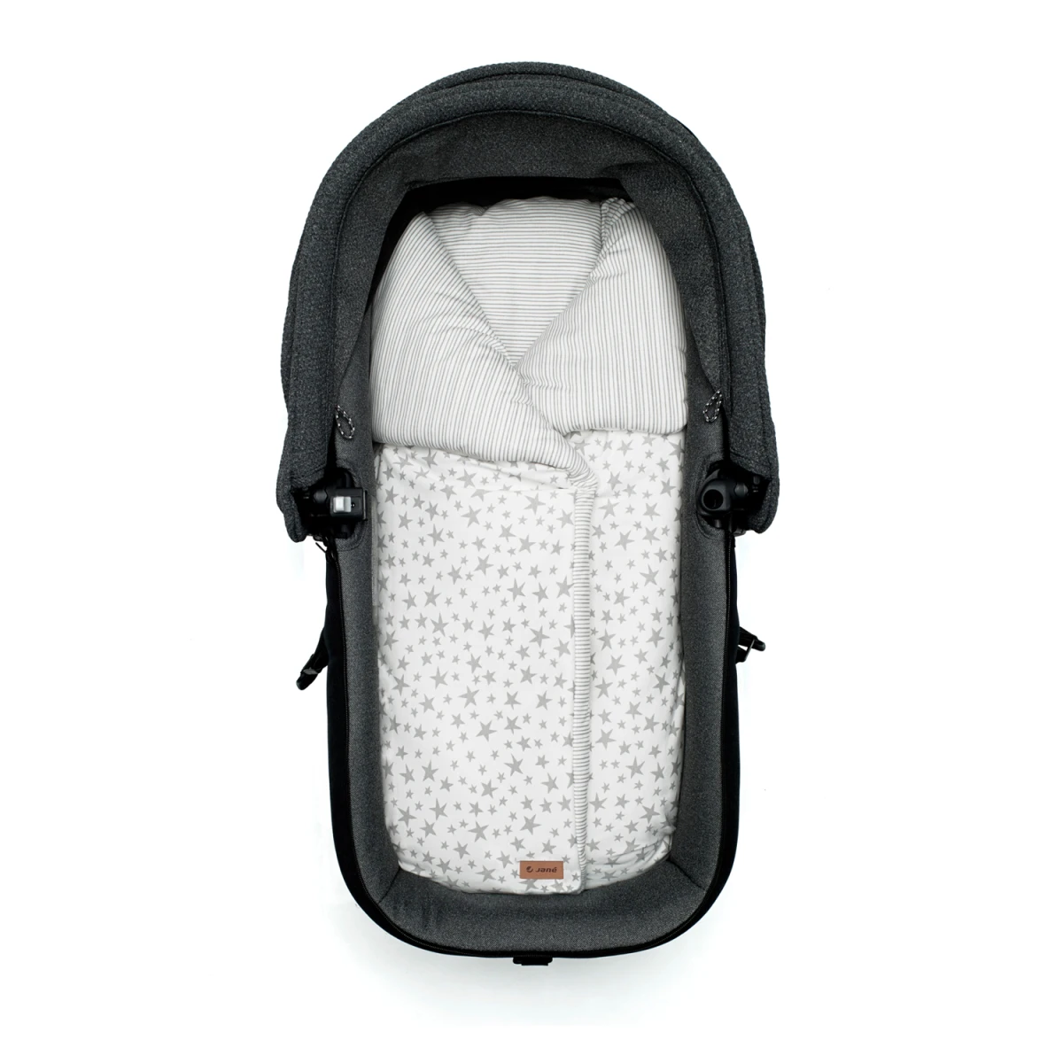 Fusak s teplou výplňou do kočíka je možné premeniť na obojstrannú detskú deku. Zips v spodnej časti bráni odkrytiu nožičiek, suché zipsy umožňujú otvorenie a upevnenie bočných chlopní.