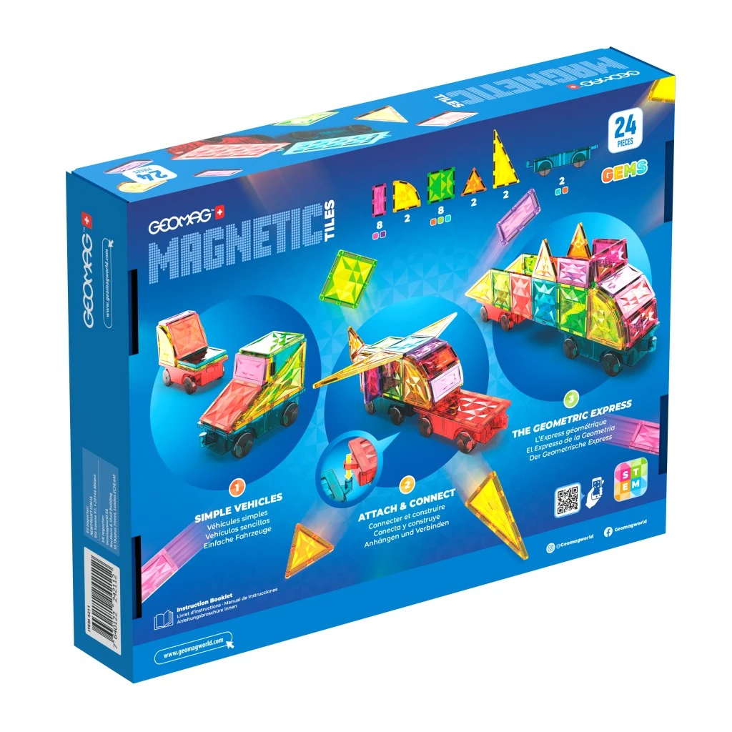 Dieliky Geomag Magnetic Tiles Autá obsahujú integrované magnety na všetkých stranách jednotlivých tvarov.
