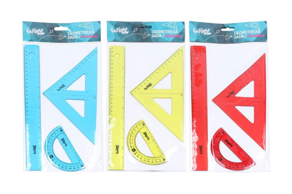 Sada obsahuje: rovné pravítko, trojuholník, uhlomer