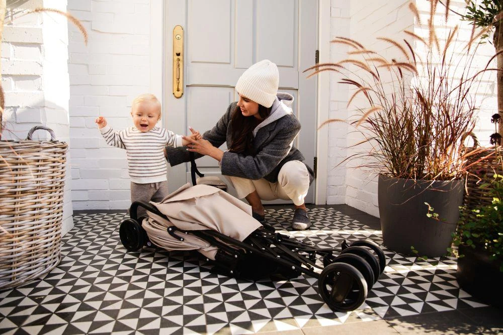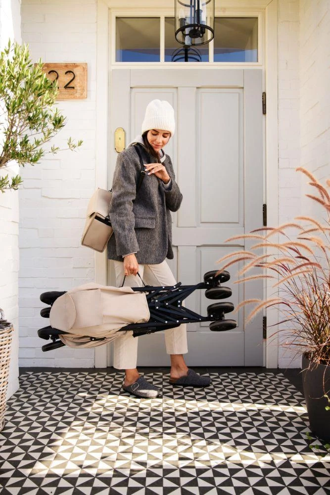 Vďaka ľahkému a rýchlemu skladaniu kočíka MoMi AKIRA ho ľahko uložíte do auta. Okrem toho je kočík vybavený držadlom na prenášanie zloženého kočíka.