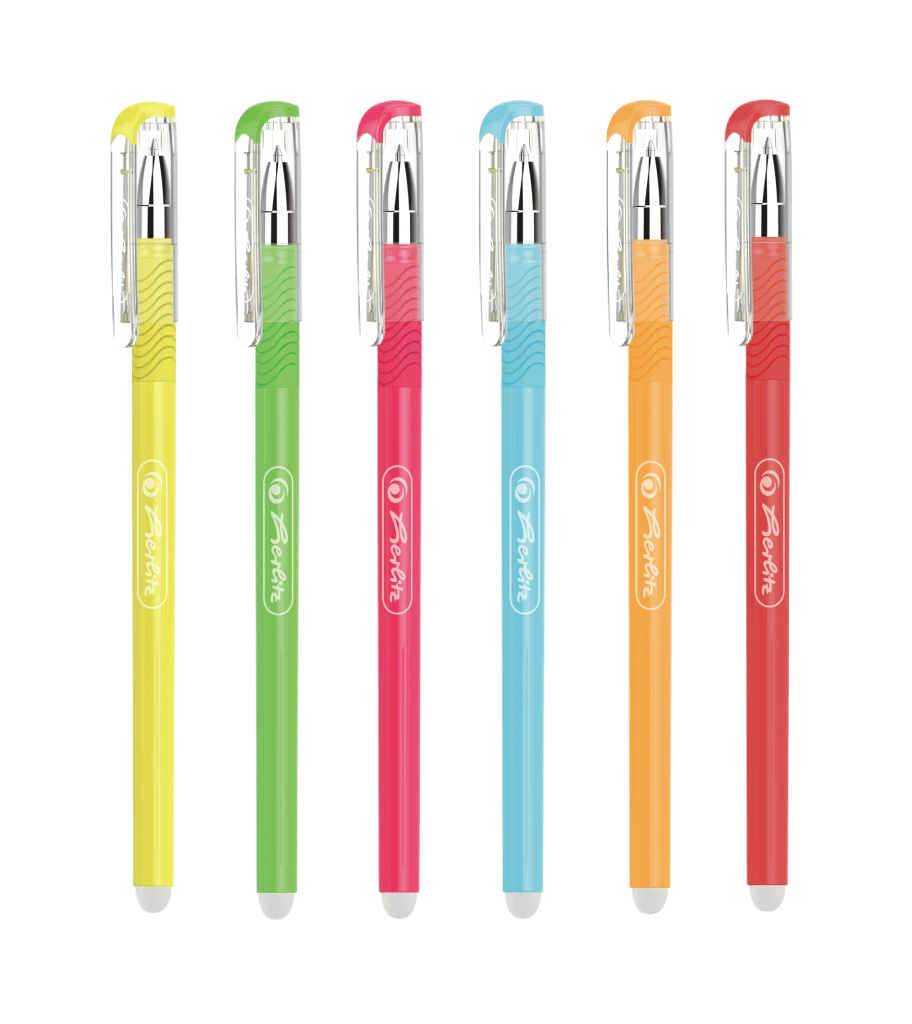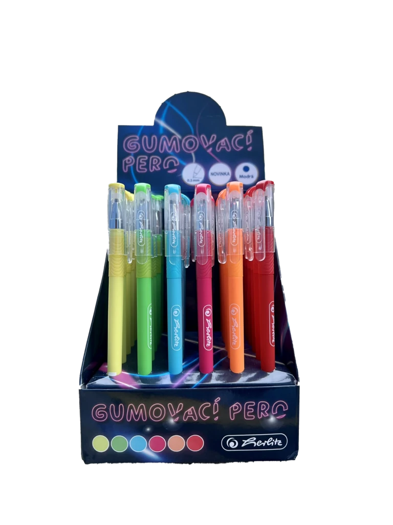 Píšte bez obáv a gumujte bez stôp! Jednorazové pero s viečkom v žiarivých neónových farbách, šírka stopy 0,5 mm pre precízne a čisté písmo. Modrá náplň zaistí klasický vzhľad textu, a keď sa pomýlite – ľahko všetko vymažete.