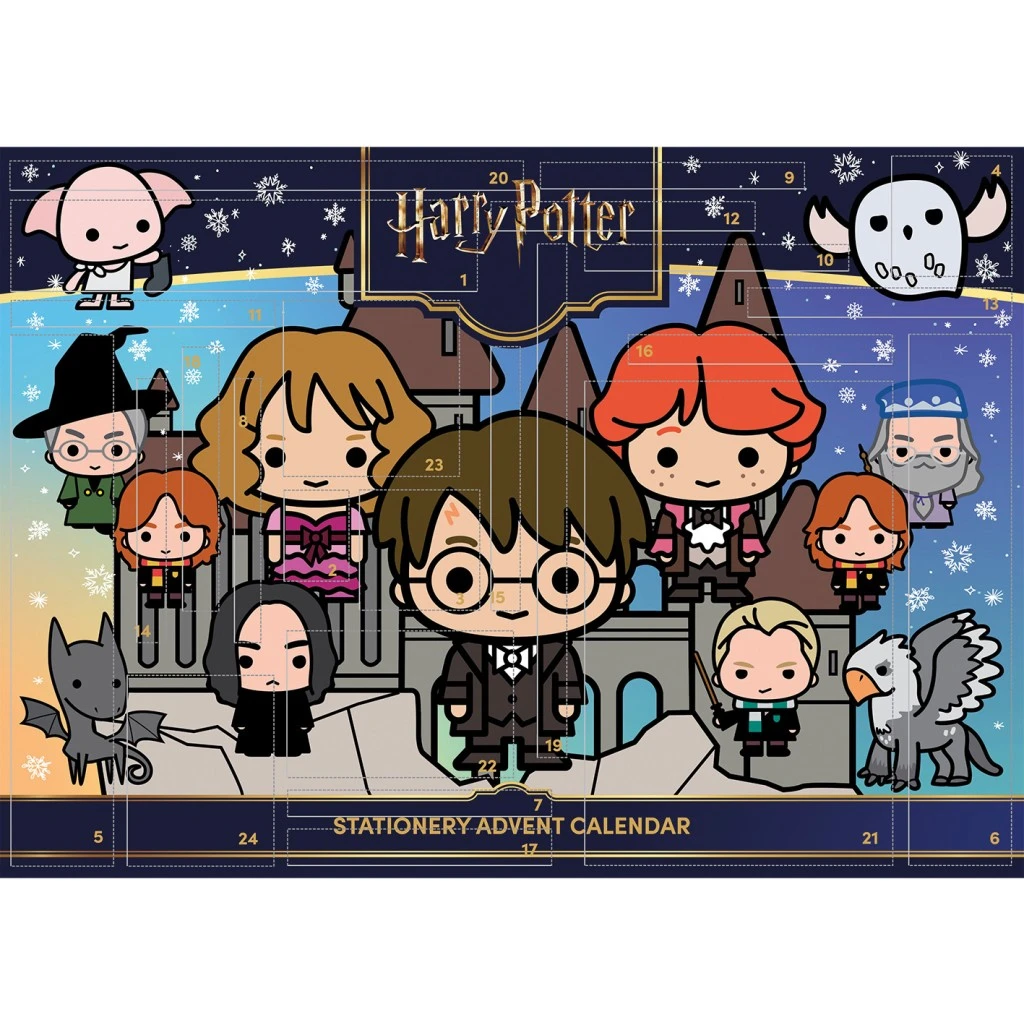 Zaži kúzelný advent s licencovaným papierenským kalendárom Harry Potter ! Každý deň až do Vianoc ťa čaká nové prekvapenie inšpirované svetom čiar a kúziel. Kalendár poteší malých i veľkých fanúšikov Rokfortu i milovníkov kreatívneho tvorenia. Vnútri sa ukrýva 1 pravítko (15 cm), 1 strúhadlo, 2 gumy, 2 záložky, 3 mini vodové fixy, 7 mini pastelky, 2 mini gélové perá, 2 ceruzky HB, 3 magnetky a 1 hárok samolepiek. Ideálny darček, ktorý spája magickú atmosféru, zábavu aj praktickosť.