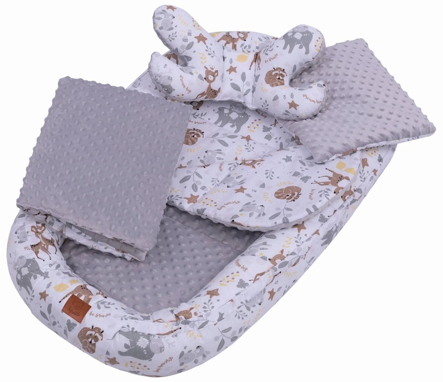 Prikrývka/kolíska + plochý vankúš poskytujú teplo počas spánku, mäkko zavinujú a môžu nahradiť lôžkoviny v prvých týždňoch života. Sú tiež ideálne na použitie v kočíku, postieľke, kolíske. Vďaka použitiu dvoch druhov látok je súprava ideálna pre všetky ročné obdobia. V zime a na jeseň môžete svoje dieťa položiť na stranu Minky, aby sa cítilo v teple, a na jar av lete odporúčame bavlnenú stranu – je rozhodne chladnejšia, ideálna pre teplé dni.