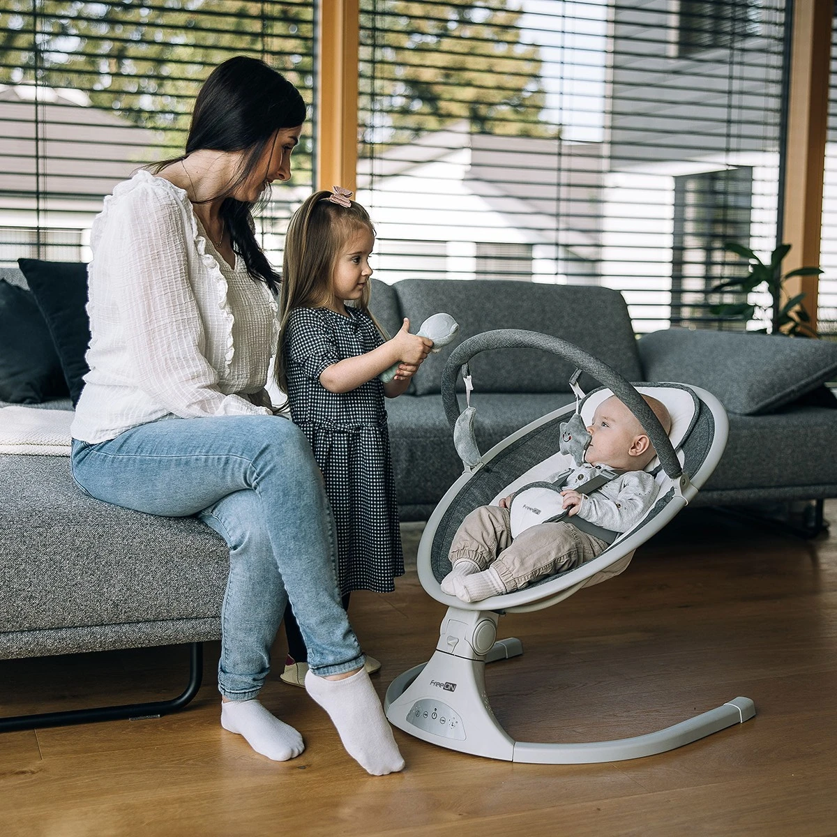 FreeON Elite hojdačka a ležadlo 2v1 ponúka praktickú funkciu 2v1 – hojdačka a ležadlo, vďaka ktorej sa ľahko prispôsobí potrebám dieťaťa i rodičov. Je vhodné od narodenia do 9 kg a poskytuje pohodlné a bezpečné miesto na oddych aj zábavu. Hojdačka ponúka jemné bočné hojdanie (side-to-side) s možnosťou nastavenia 5 rýchlostí hojdania. Pre ešte väčší komfort je k dispozícii časovač hojdania: 8/15/30 minút. Tichú prevádzku zaisťuje nerušený spánok. Súčasťou je 12 melódií s nastaviteľnou hlasitosťou, nechýba ani Bluetooth a MP3 prehrávanie + diaľkové ovládanie pre jednoduché ovládanie funkcií.