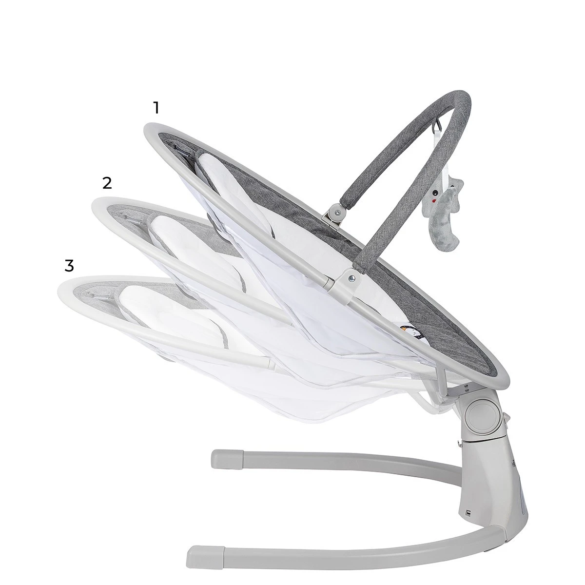 UPOZORNENIE: Používajte vždy pod dohľadom dospelej osoby. Nie je určené pre deti, ktoré samé sedia alebo sa stavajú (max. 9 kg). Nikdy nenechávajte dieťa v hojdačke bez dozoru. Vždy používajte bezpečnostné pásy. Obsahuje elektronické súčasti – chráňte pred vodou. Prečítajte si návod