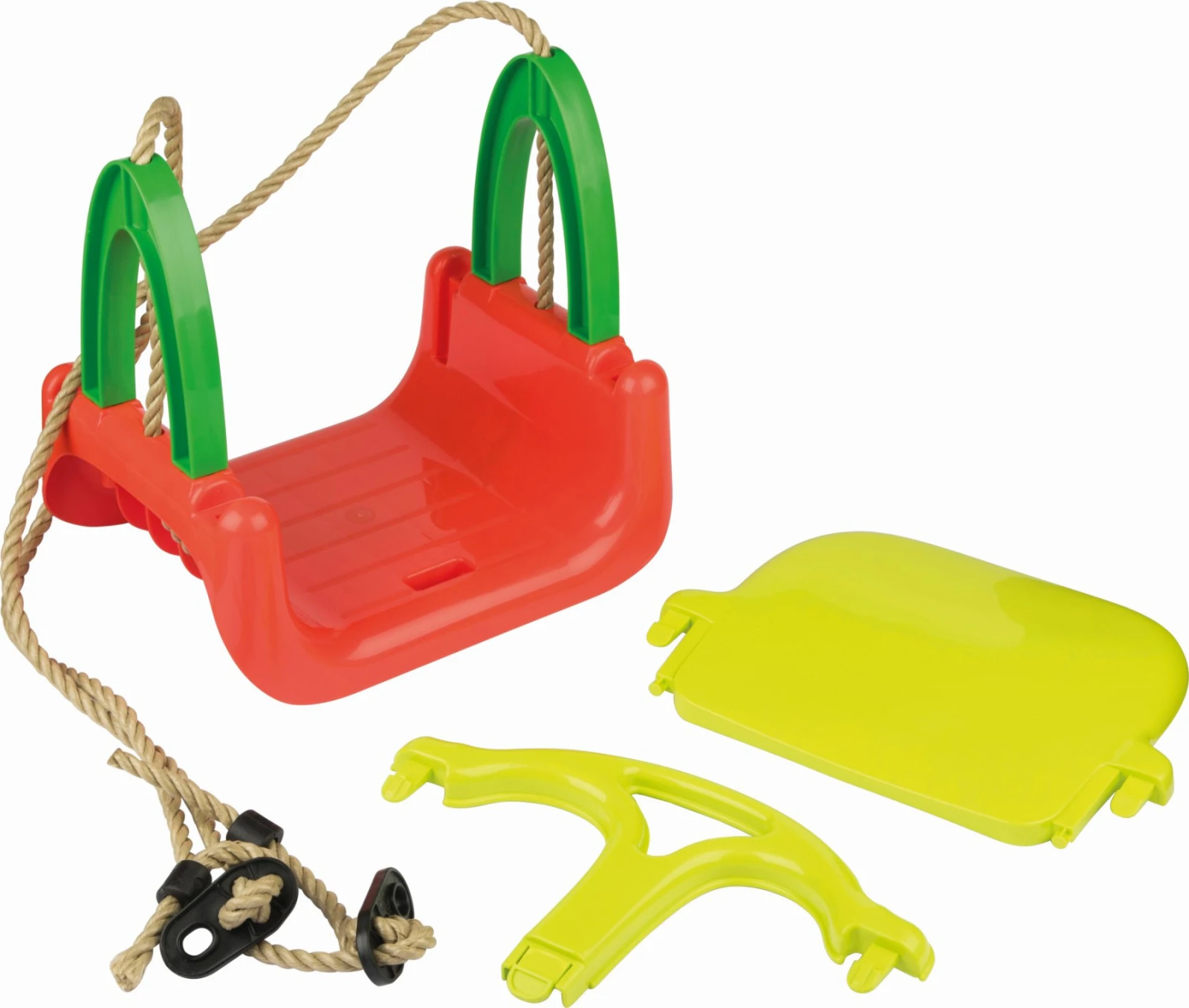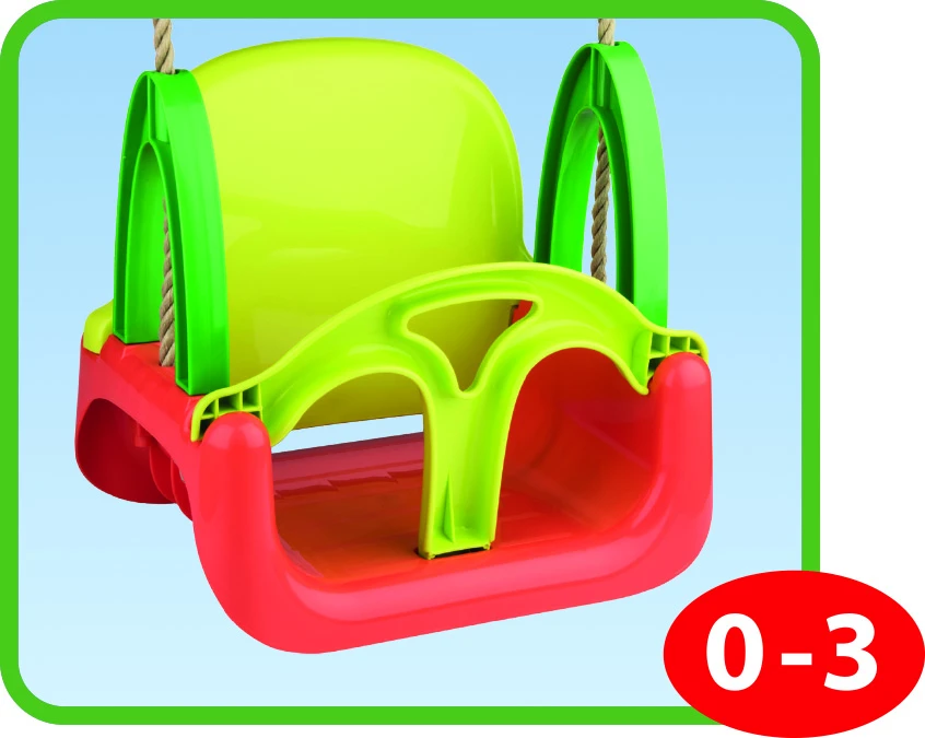 Rastúca hojdačka 3 v 1, ktorá sa prispôsobí veku dieťaťa už od jeho 12 mesiacov. Ako dieťa rastie, odstráni sa postupne predná zábrana a neskôr aj zadná opierka chrbta.