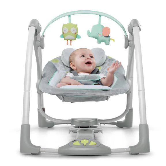 Hojdačka Hoots & Hugs™ umožňuje hojdanie v maximálnom pohodlí kdekoľvek a kedykoľvek. Hojdačka má 8 melódií a 3 prírodné zvuky, Hybridrive™ technológia zaistí, že batéria vydrží 3 krát dlhšie a TrueSpeed™ technológia s 5 rýchlosťami hojdania, ktoré je možné vhodne prispôsobiť Vášmu bábätku + odnímateľná opierka hlavy a odnímateľná hrazdička s 2 plyšovými hračkami a ďalšie funkcie.