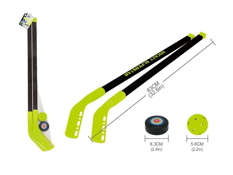 Obsah balenia - 2x hokejka (dĺžka hokejky 83 cm), 1x loptička (5,6 cm), 1x puk (6,3 cm).