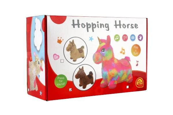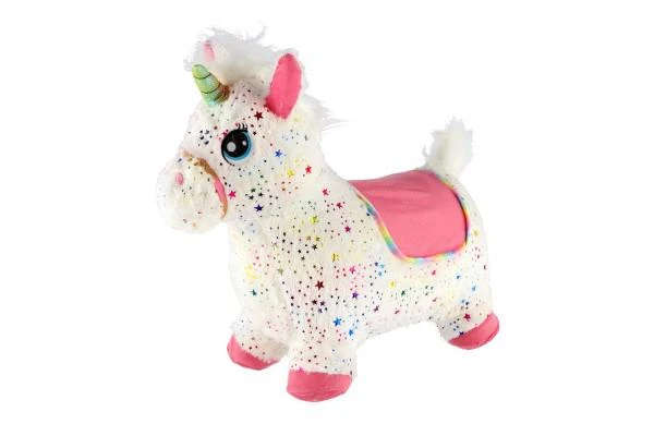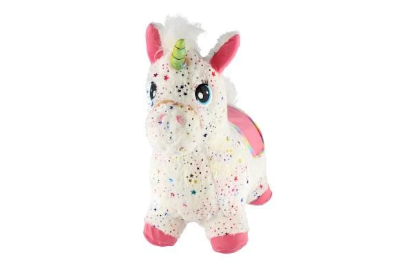 Hopsadlo jednorožec plyš biely s hviezdičkami na batérie a so zvukom