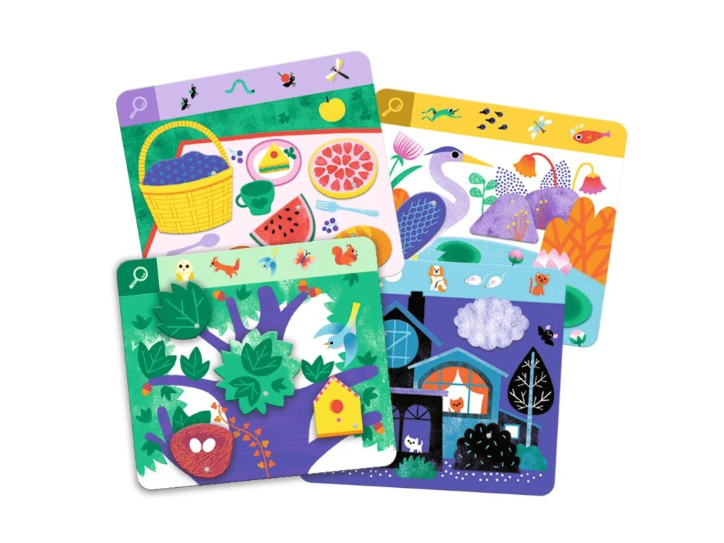 Hra podporuje popis, pomenovanie a porozumenie deťom blízkych motívov. Dieťa pri hľadaní komentuje, čo vidí - rozvíja tak slovnú zásobu aj plynulý prejav.