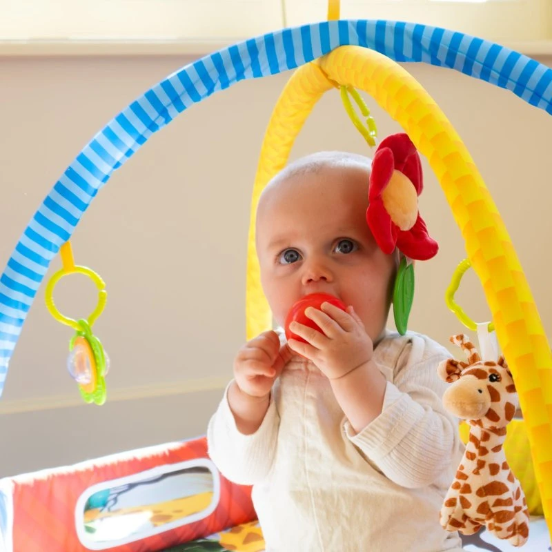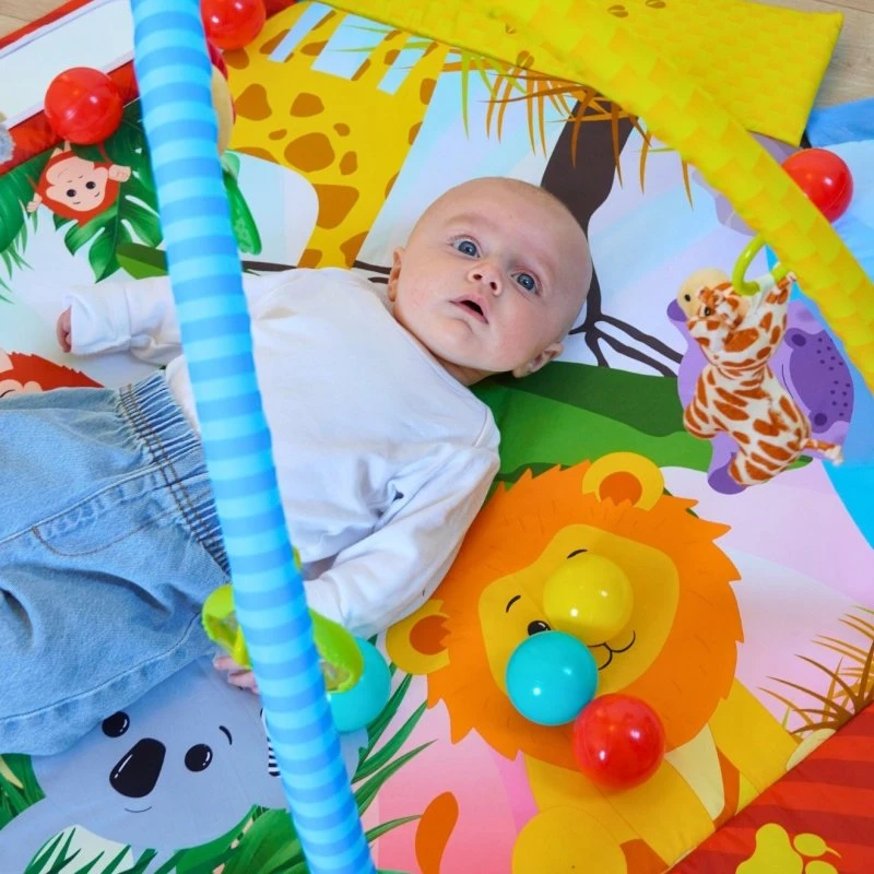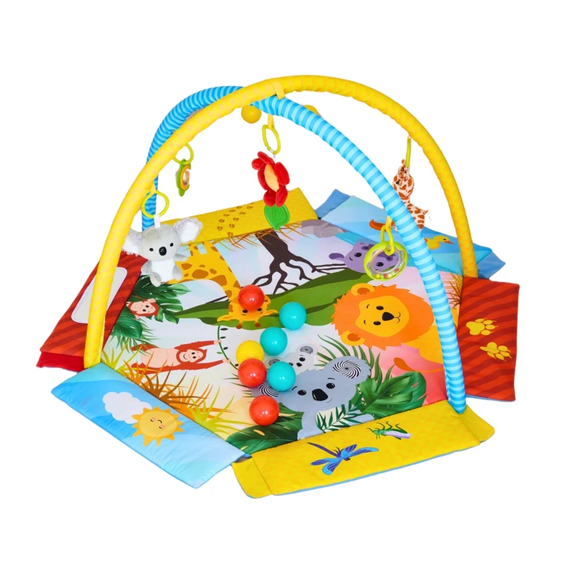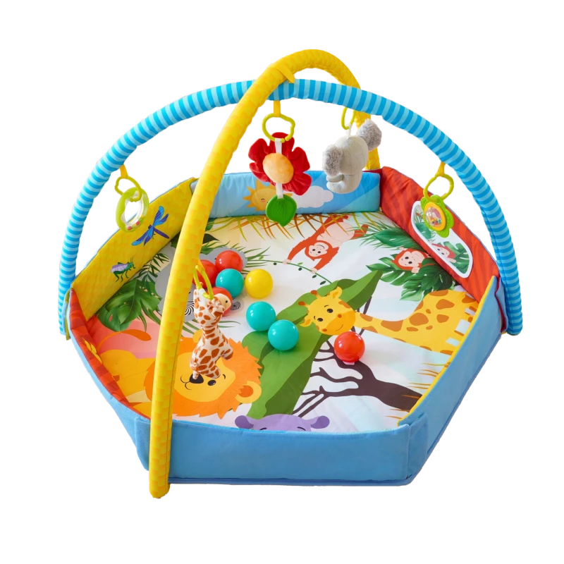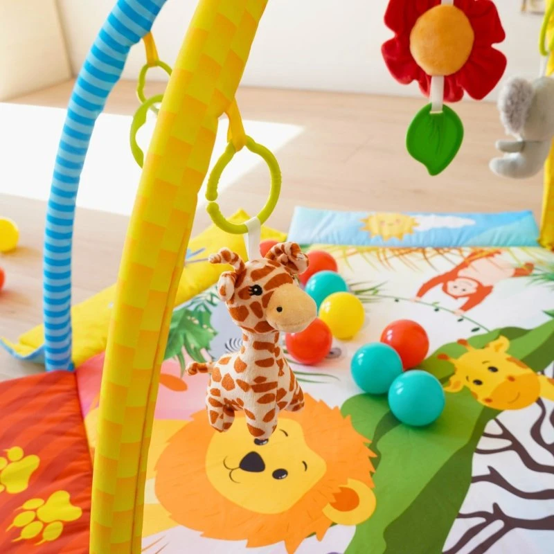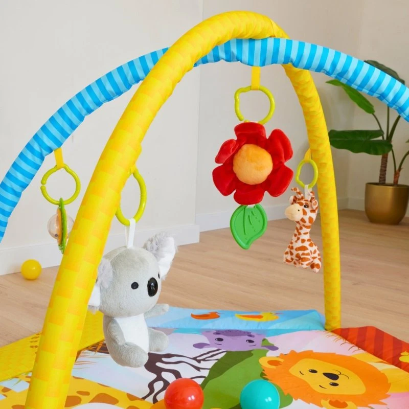 - na hrazdičke je zavesených 5 hračiek s rôznymi aktivitami - je možné ich zložiť a zameniť za iné