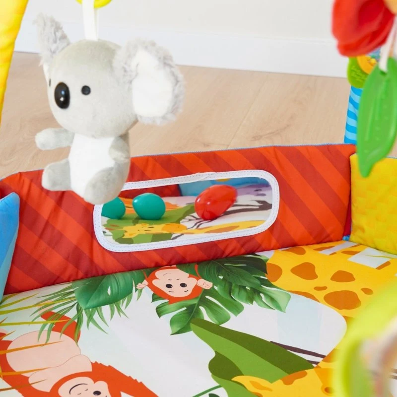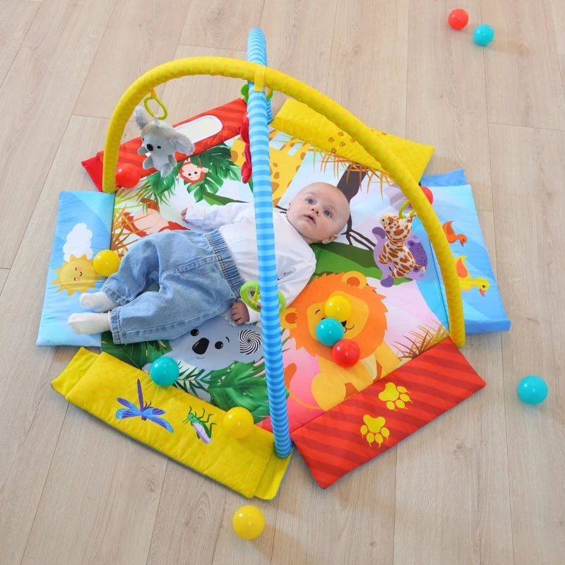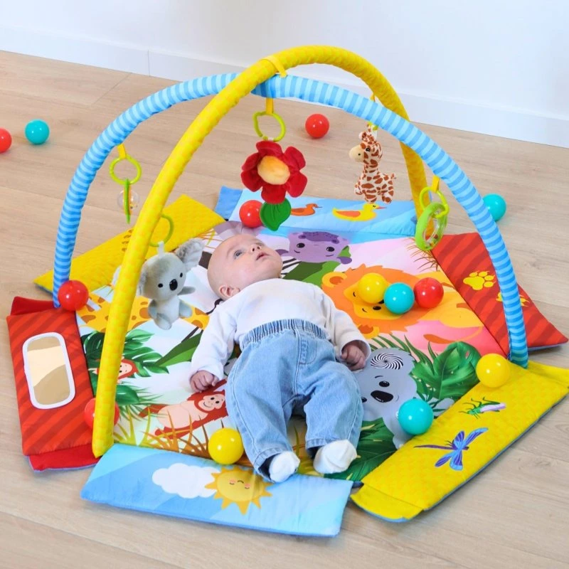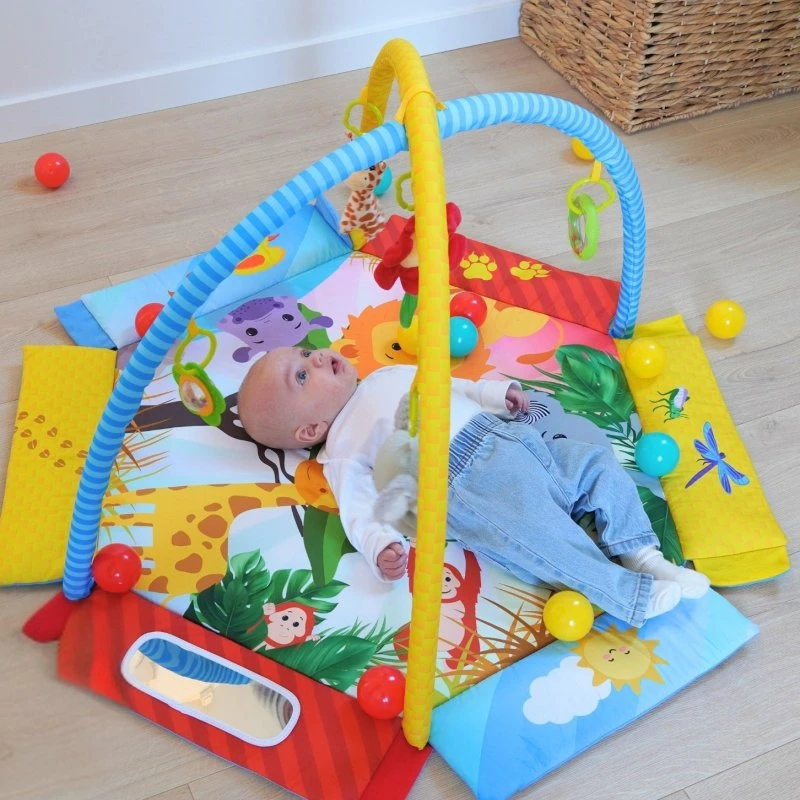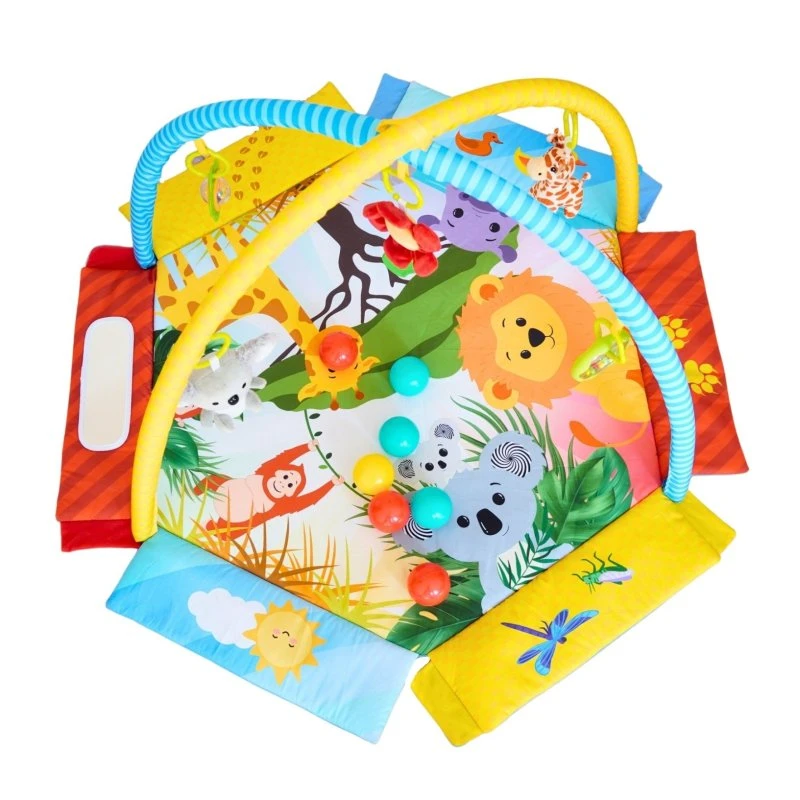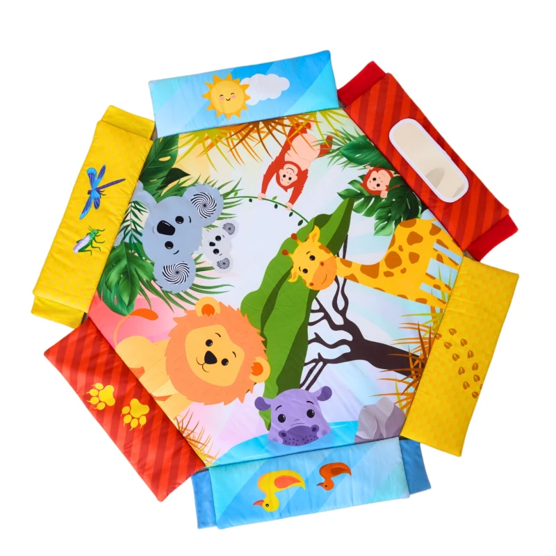 - hracia deka v pestrofarebnom dizajne, ktorú je možné počas chvíľky premeniť na bazénik (pomocou suchých zipsov)