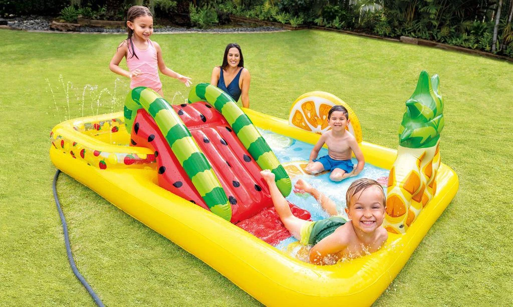 Tento nafukovací detský bazén je vybavený šmykľavkou, postrekovačom/sprškou, 6 hracími loptičkami a nafukovacou jahodovou hračkou. Bezpečná konštrukcia s mäkkými nafukovacími stenami zaisťuje bezpečnosť pre deti. Nafukovacie hračky a potreby Intex spĺňajú najprísnejšie bezpečnostné normy na spracovanie a použité materiály.