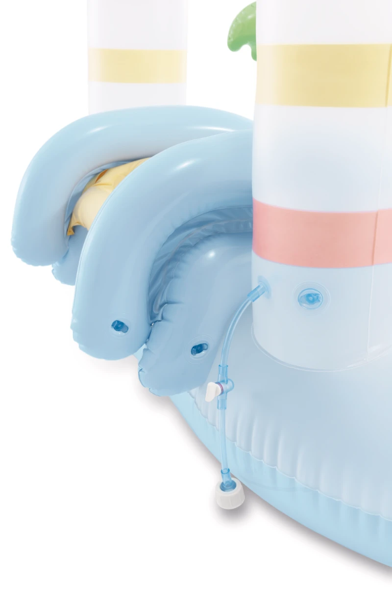 Súčasťou hracieho centra je oblúk v tvare hradu, medzi dvoma vežami, ktorý je možné pripojiť k záhradnej hadici. Po pripojení sa oblúk premení na príjemnú spŕšku, ktorá deti osvieži a spríjemní im pobyt vo vode. Vzduchové ventily sú umiestnené tak, aby nafukovanie a vypúšťanie bolo jednoduché a rýchle, navyše je tu zabudovaný vypúšťací ventil na pohodlné vypustenie vody či vzduchu.