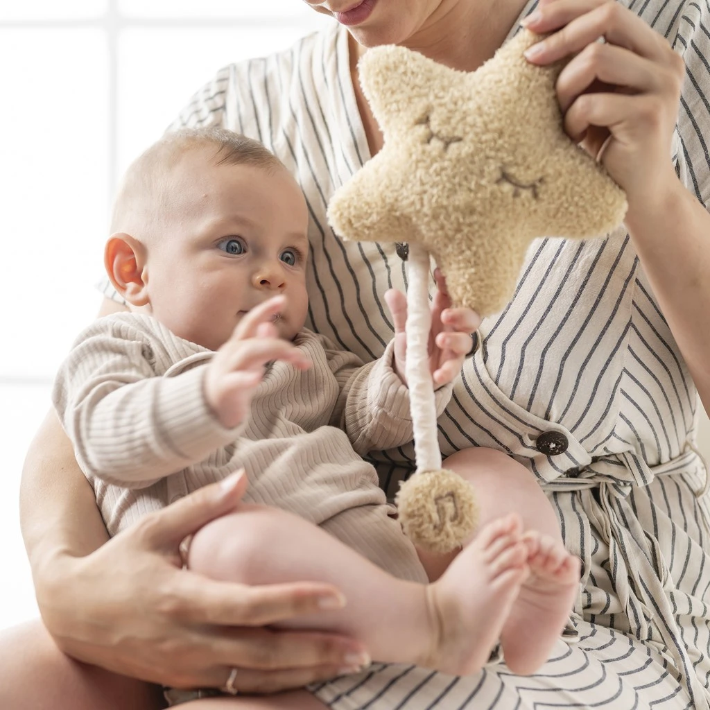 Vďaka ideálnej veľkosti sa hodí do postieľky, kočíka aj kolísky a dá sa ľahko vziať kamkoľvek so sebou. Podporuje rozvoj sluchového vnímania aj jemnej motoriky a zároveň dodá detskej izbičke krásny, harmonický prvok.