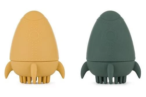 - Mäkké, pružné silikónové telo a ľahko uchopiteľný tvar umožňujú deťom raketu stláčať, držať a objavovať, čo pomáha rozvíjať jemnú motoriku a kreatívne myslenie. Po kúpaní ju jednoducho rozskrutkujete, opláchnete a necháte uschnúť.
