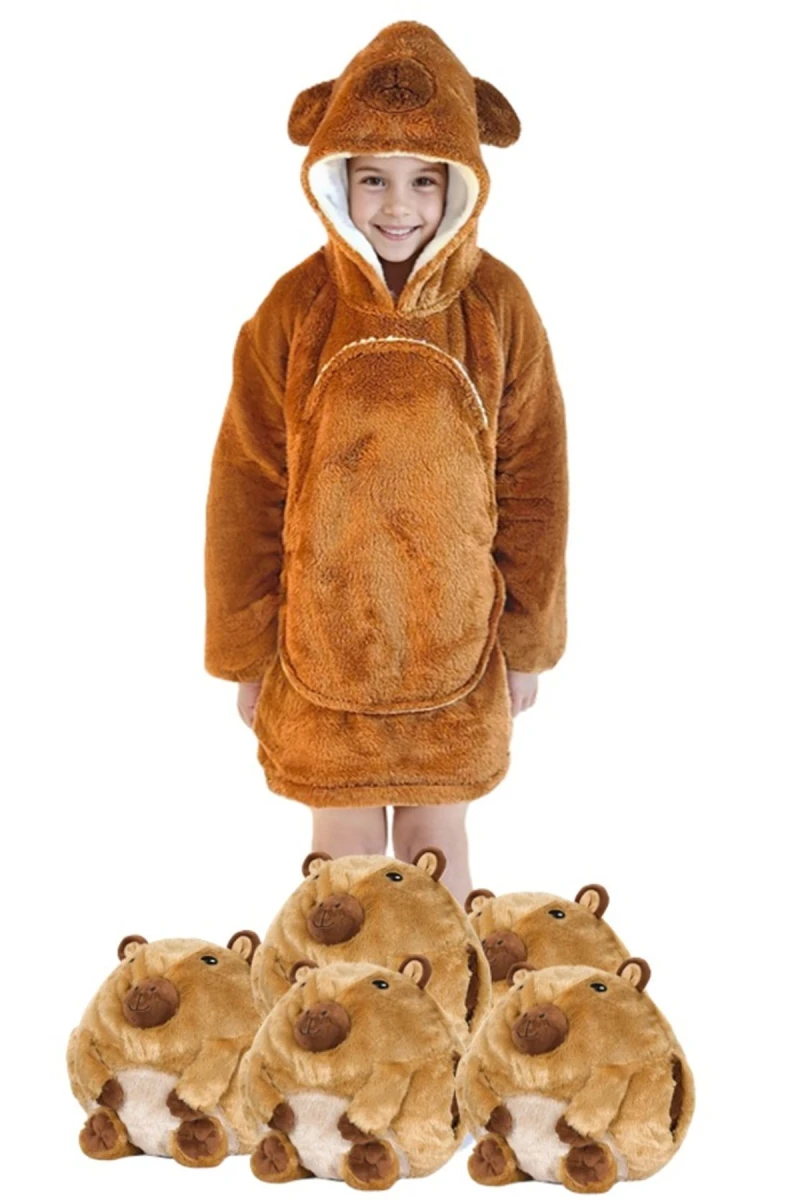Veľká mikina s kapucňou s motívom zvieratka, ktorá plní funkciu teplučké, mäkučké a nadýchané deky, ktorá zahreje pri každej príležitosti a navyše deti potešia svojim hravým a ľúbivým dizajnom.