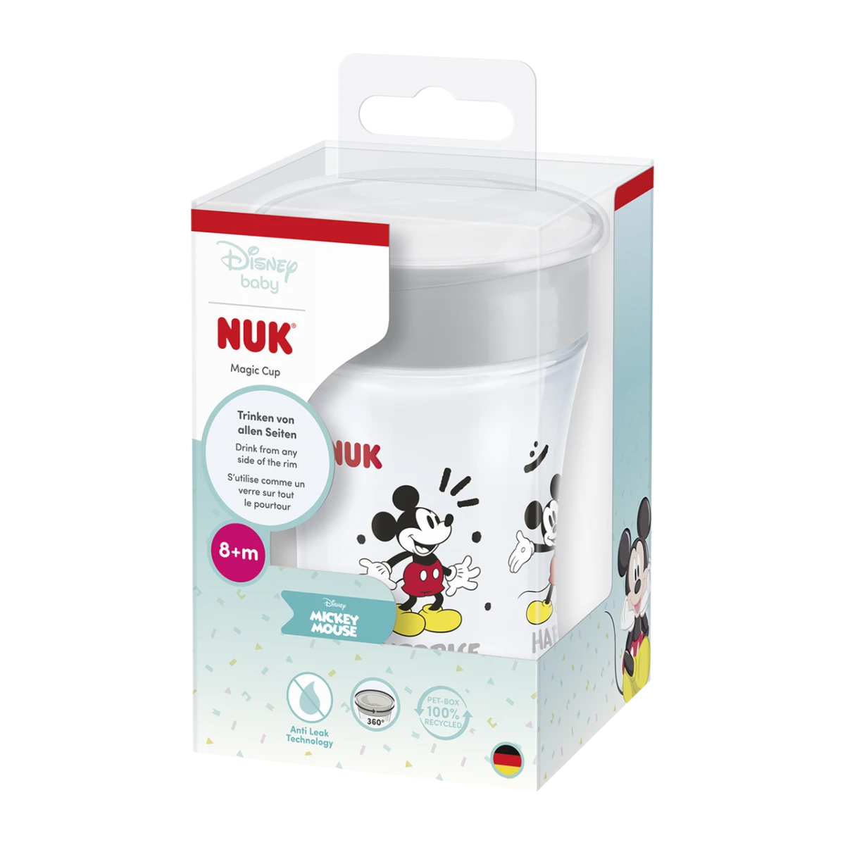 Magic Cup NUK je vyrobený z vysoko kvalitných a silných materiálov, neobsahuje BPA a je vyzdobený roztomilými motívmi. Skladá sa z niekoľkých jednotlivých častí, ktoré je možné jednoducho rozložiť a vyčistiť: jednoducho ich vložte do umývačky riadu. A aby bol kúzelný hrnček NUK čistý aj na cestách a nepoškodil sa, obsahuje ďalšie ochranné viečko.