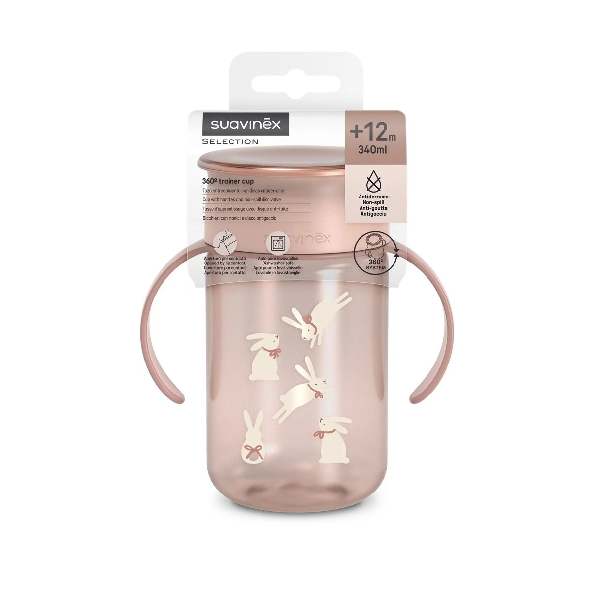 Hrnček má držadlá vhodné pre drobné detské ruky, ktoré umožnia jej ľahké uchopenie . Ouška sú kompatibilné so všetkými dojčenskými fľašami Suavinex, okrem radu Zero Zero a fliaš so silikónovou fliaš z kolekcie Colour Essence.
