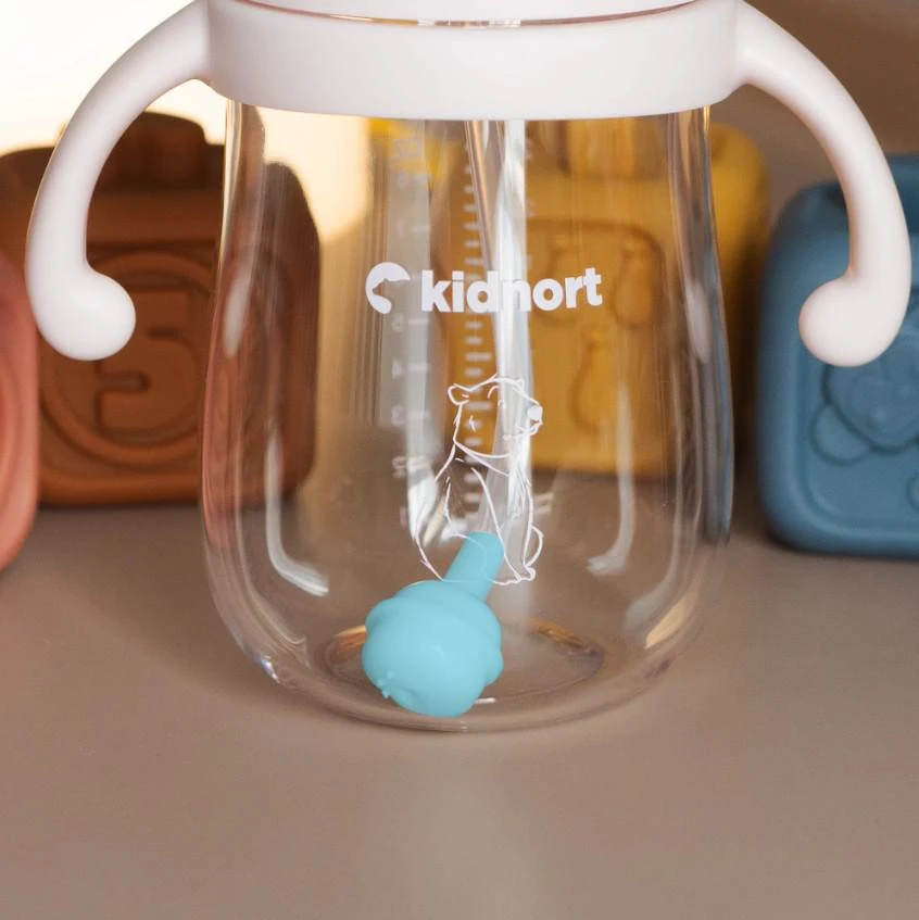 Dizajnový kryt v tvare plyšového medvedíka robí z fľaštičky atraktívny doplnok a zároveň podporuje dieťa v samostatnom používaní. Protiprachový kryt chráni slamku pred nečistotami, baktériami a poškodením.