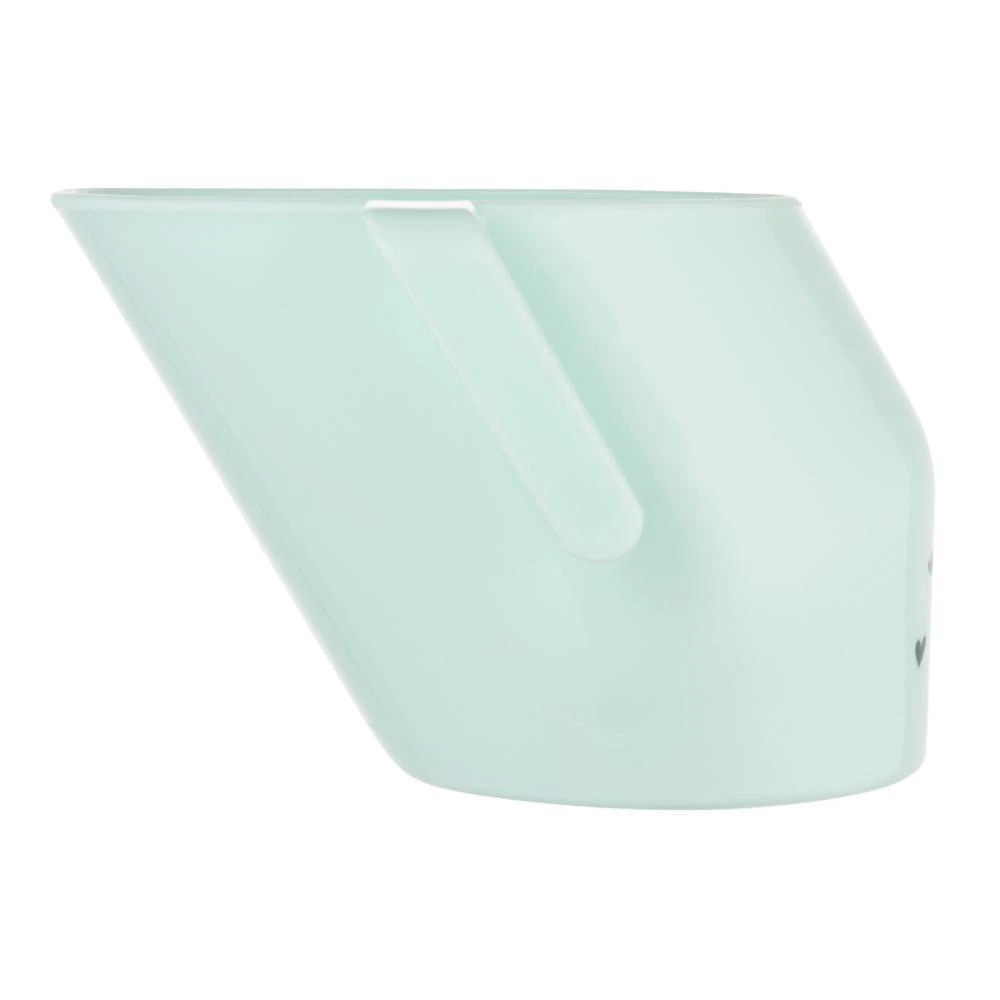 Skosený bočný okraj umožňuje pitie bez zakláňania hlavy, čo pomáha znižovať riziko udusenia.