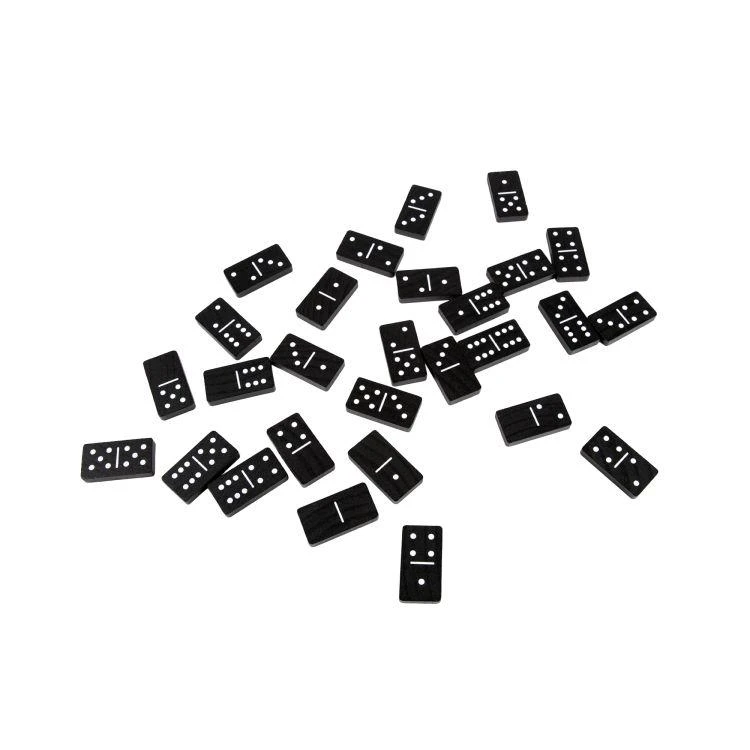 Hry vo vrecúšku - Domino obsahujú: 28 drevených domino kociek, české a slovenské pravidlá.