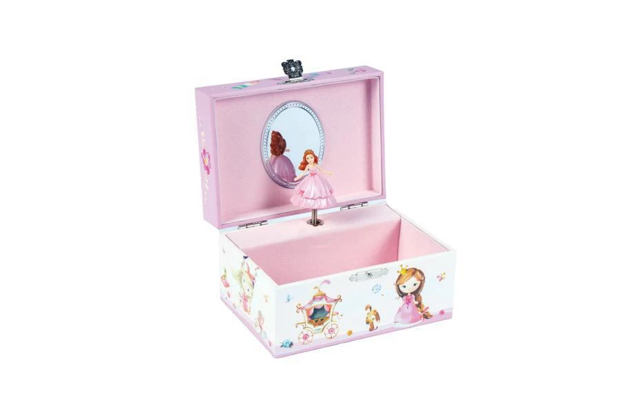 Hracia skrinka s princeznou, ktorá sa točí. Skrinka po otvorení hrá a princezná sa točí.