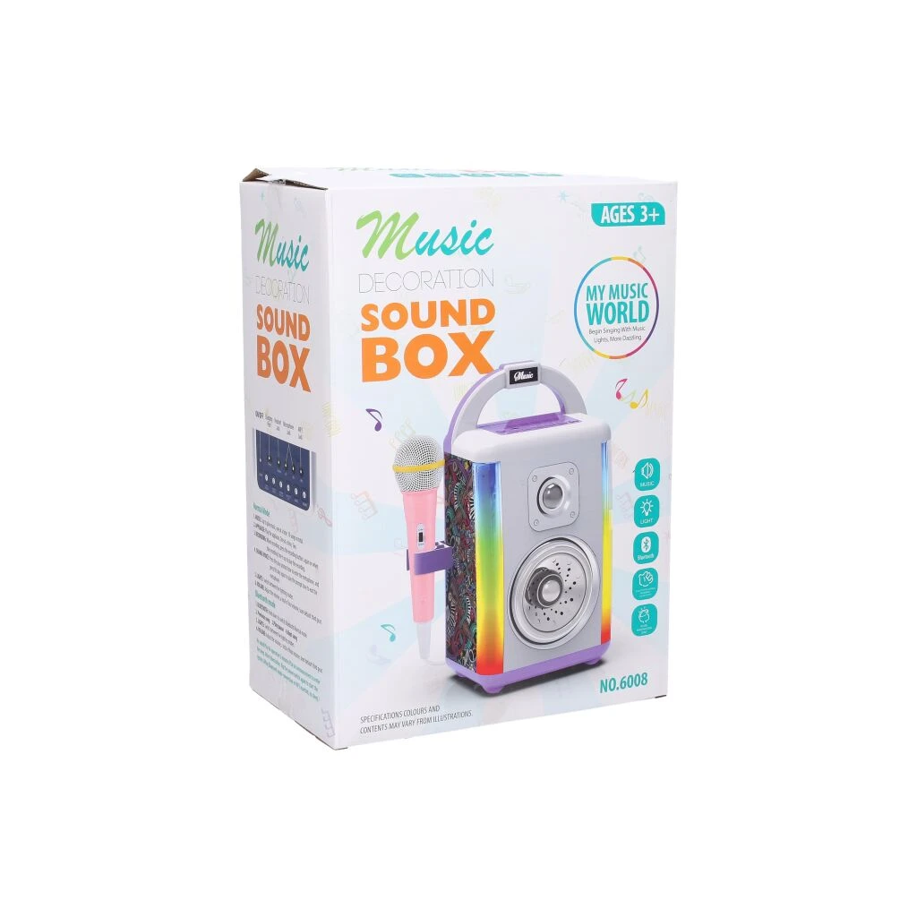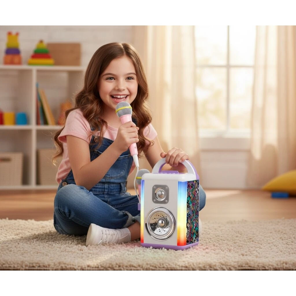 Hudobný box navyše ponúka 5 módov osvetlenia, tlačidlo potlesku a možnosť pripojenia až dvoch mikrofónov. V balení nájdete jeden mikrofón, takže môžete okamžite začať spievať a baviť sa. Praktický režim spánku šetrí batériu, pokiaľ zariadenie päť minút nepoužívate.