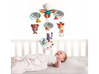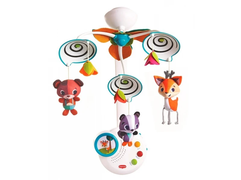 Krásny, farebný kolotoč Tiny Love nad postieľku. Kolotoč sa otáča a hrá 20 minút klasických melódií. Obsahuje aj príjemné nočné svetlo. Kolotoč podnecuje vývoj detských zmyslov a vytvára pocit pokoja a spokojnosti.