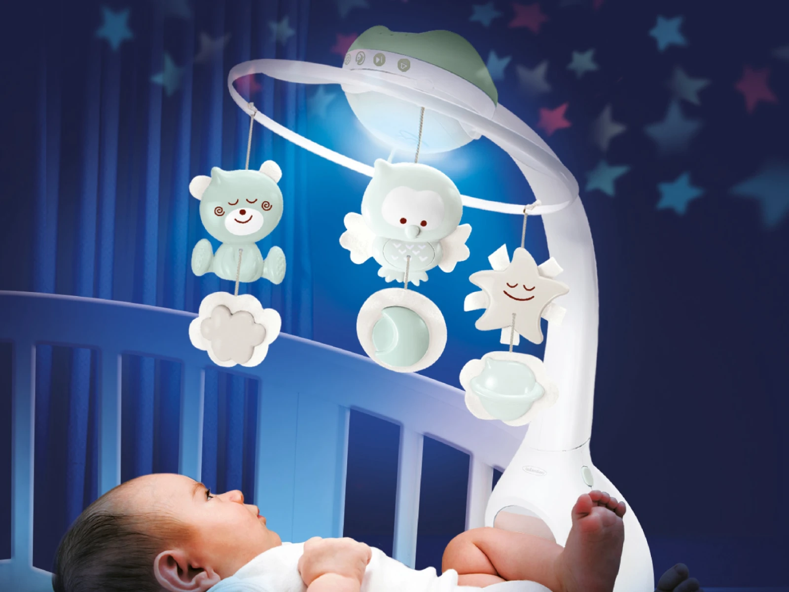 Hudobný kolotoč so svetelným projektorom pre ľahké zaspávanie aj zabavenie dieťaťa.