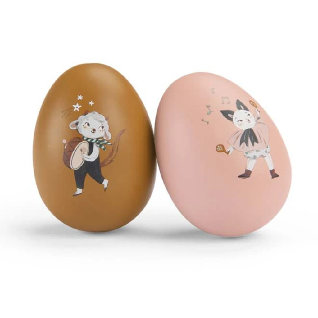 Tieto roztomilé maracas z drevených vajíčok v jemných ružových a taupe odtieňoch sú zdobené krásnymi, poetickými ilustráciami z kolekcie Apres la pluie, ktorú navrhla Lucille Michieli. Vďaka ergonomickej veľkosti, navrhnutej špeciálne pre malé detské ruky, sú ideálne pre prvé hudobné experimenty vašich najmenších.